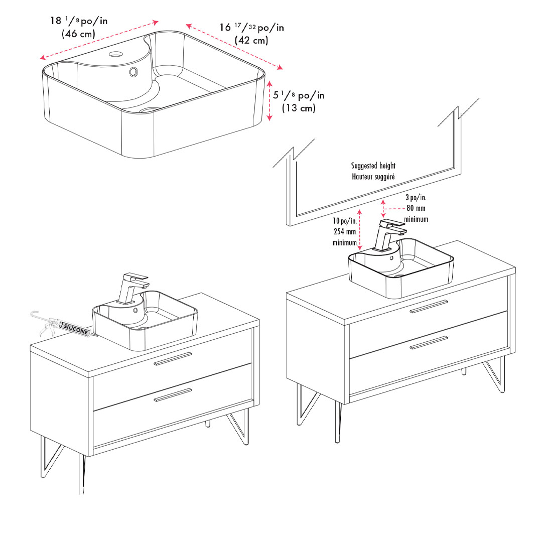 Le lavabo de comptoir ZIRA LAV1248 est conçu pour les espaces modernes recherchant à la fois élégance et fonctionnalité. Fabriqué en pierre synthétique durable, ce lavabo carré à installation en surface possède un trou monotrou pour robinetterie standard et un trop-plein intégré pour une sécurité accrue. Son format compact (46 x 42 x 13 cm) s’adapte parfaitement aux petites comme aux grandes salles de bain.