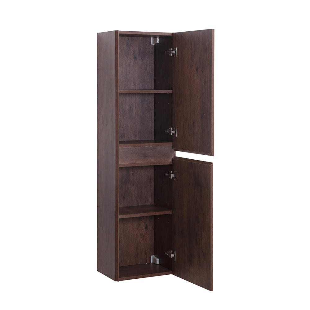 Lingerie murale réversible, fini bois de rose, laminé européen, bordures en PVC, installation murale, 2 portes avec pentures à fermeture lente, 2 tablettes réglables, quincaillerie incluse.