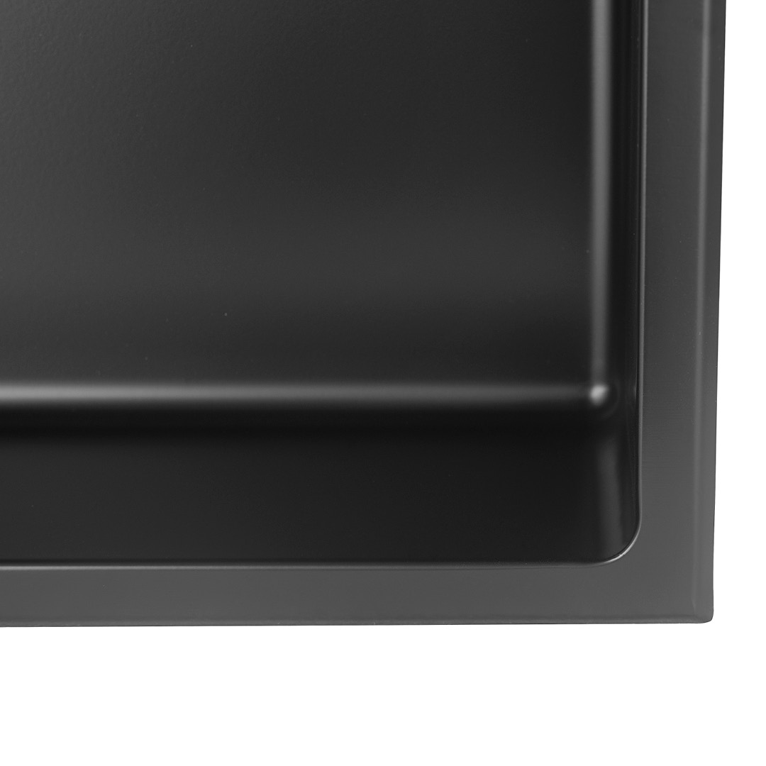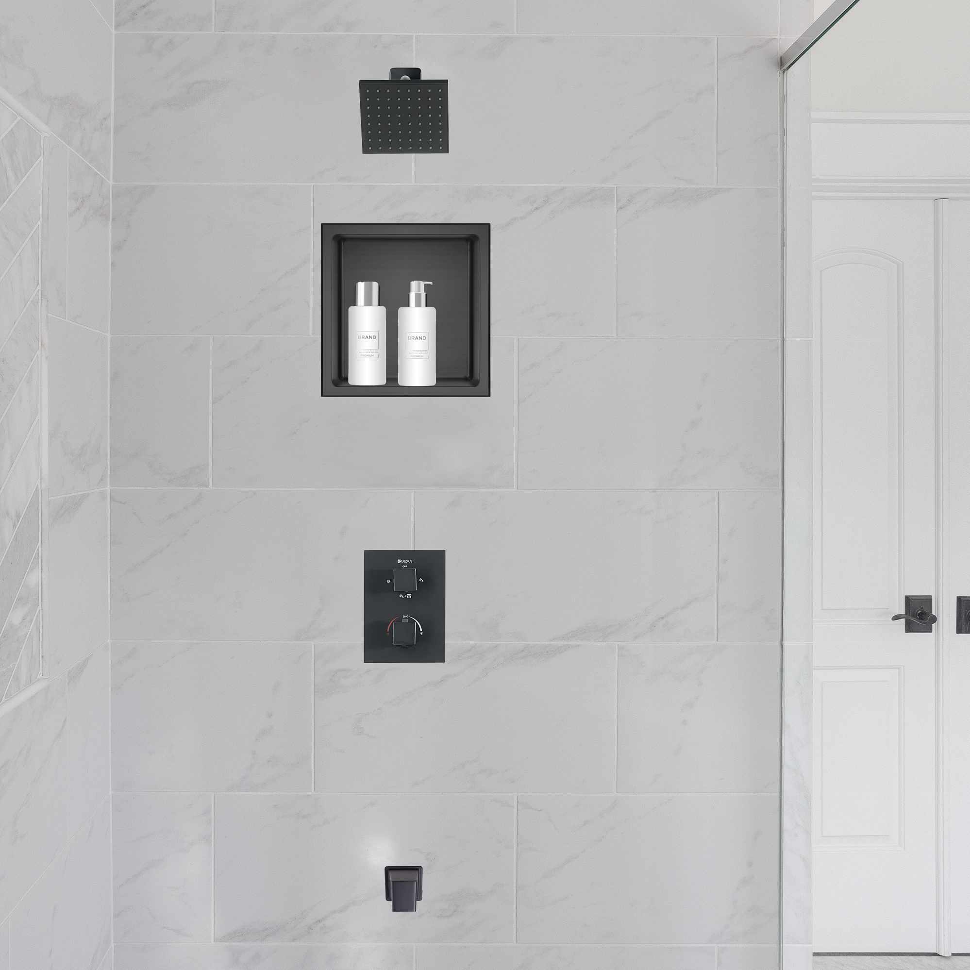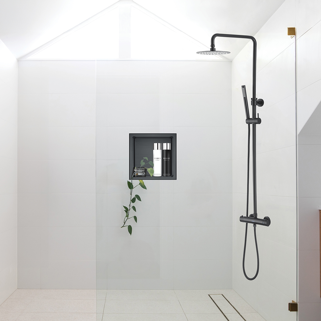 Niche de douche encastrée Layla N1212BL en noir mat. 30 × 30 cm. Facile à installer, résistante à la corrosion, étanche.