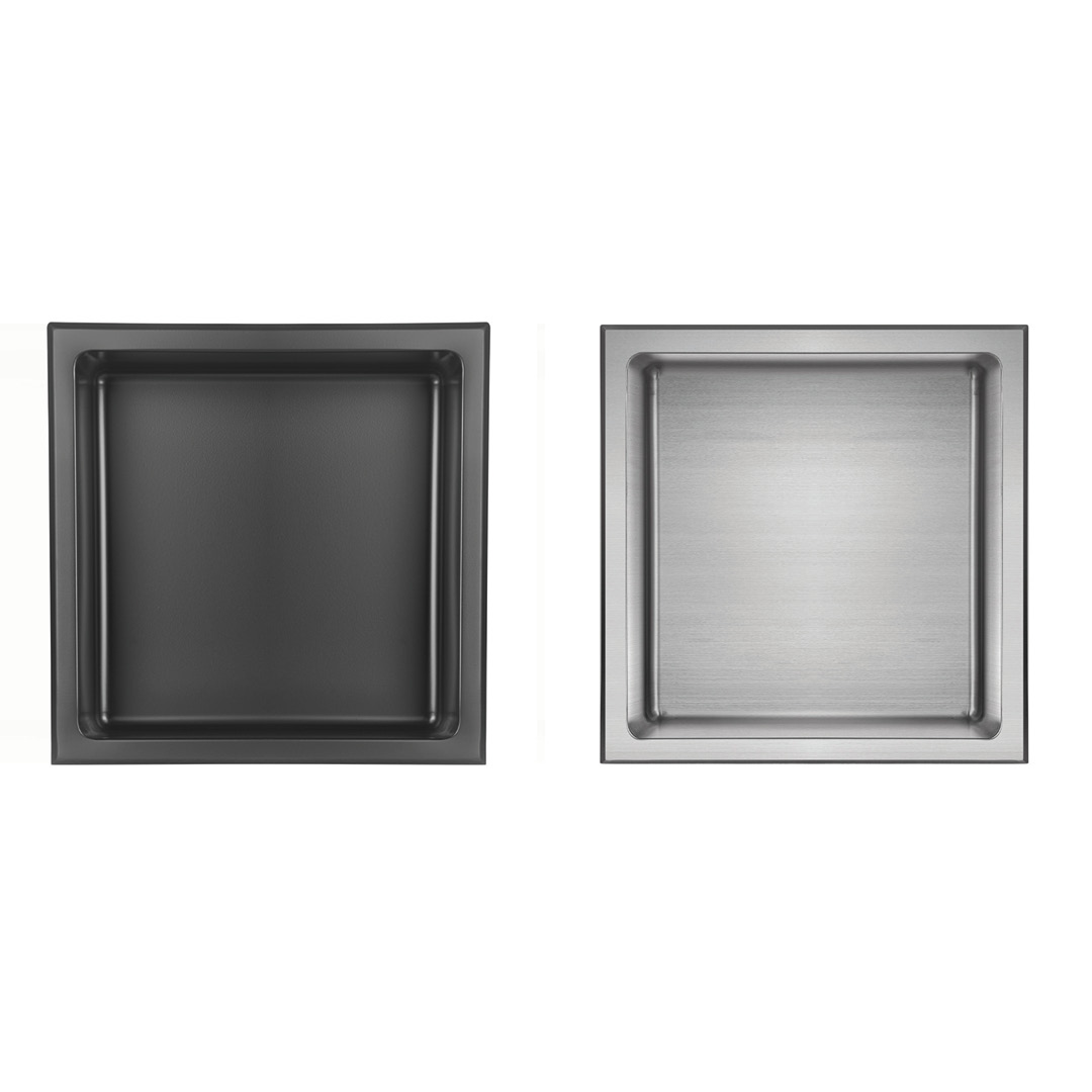 La niche de douche encastrée Layla N1212BL d’akuaplus® est fabriquée en acier inoxydable 304 calibre 18, fini noir mat. Dimensions 30 × 30 cm, coins arrondis de 1 cm, pente légère pour l’égouttement et peinture électrostatique cuite. Entièrement étanche, facile à nettoyer, s’installe directement sur le mur sans carrelage. Peut être posée horizontalement ou verticalement. Certifiée cUPC, approuvée par les propriétaires, détaillants et professionnels partout au Canada avec Dimex360 Inc. depuis 2002. Cette niche de douche en acier inoxydable 304 est une étagère encastrée étanche qui ajoute un rangement mural moderne à la salle de bain. Son matériau résistant à la corrosion garantit la durabilité, tandis que l’installation encastrée offre une finition élégante et facile à nettoyer. Peut être installée horizontalement ou verticalement, avec 1 ou 2 tablettes. Idéale comme niche de douche encastrée inox, niche murale moderne ou étagère murale pour salle de bain.