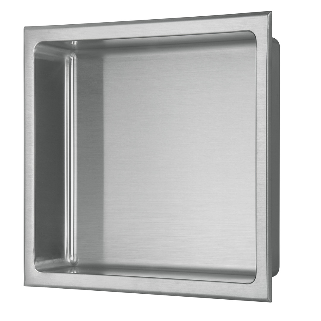 Niche de douche encastrée Layla N1212SS en acier inoxydable brossé. 30 × 30 cm. Facile à installer, résistante à la corrosion, étanche.