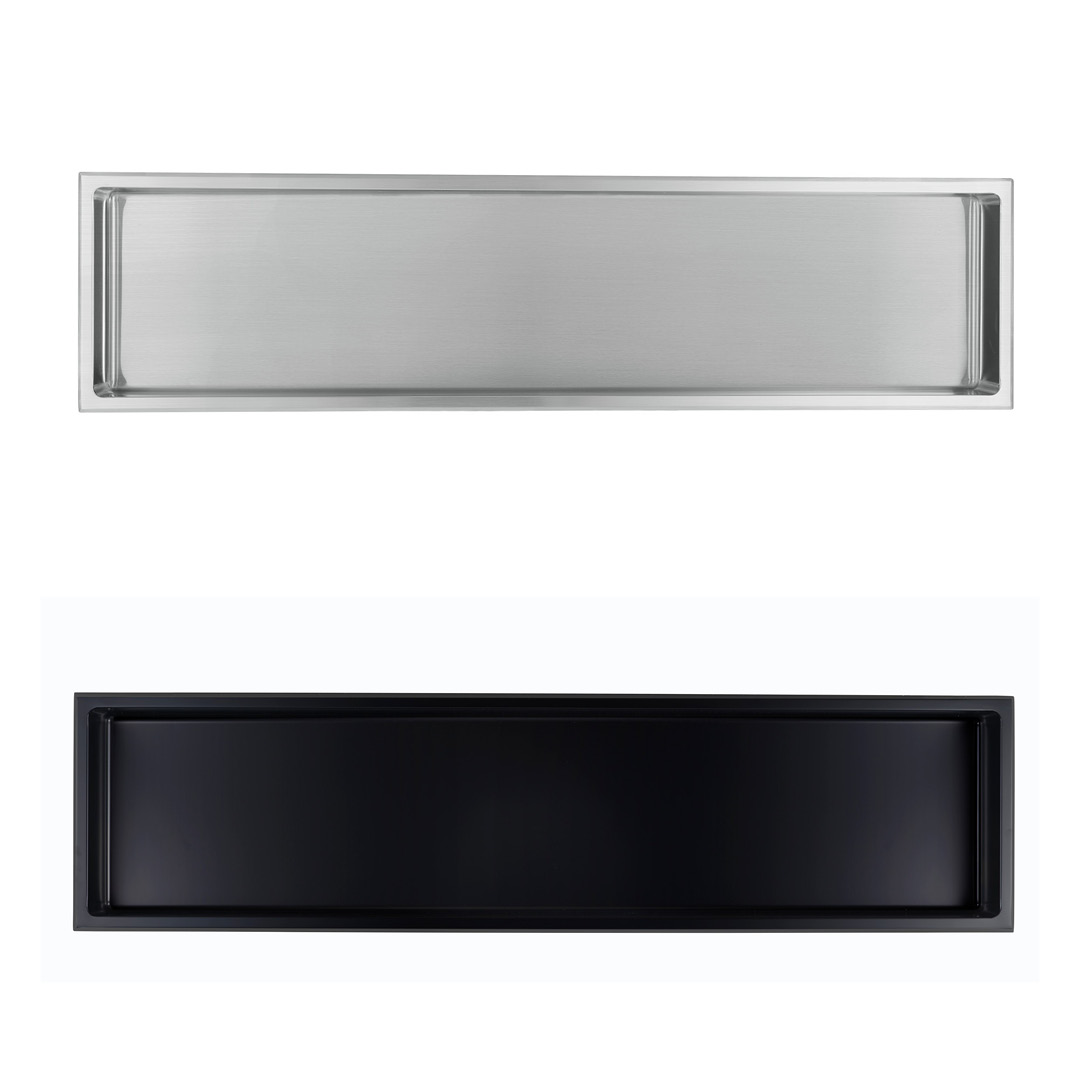 La niche de douche encastrée Layla N1248BL d’akuaplus® est fabriquée en acier inoxydable 304 calibre 18, fini noir mat. Dimensions 30 × 120 cm, coins arrondis de 1 cm, pente légère pour l’égouttement et peinture électrostatique cuite. Entièrement étanche, facile à nettoyer, s’installe directement sur le mur sans carrelage. Peut être posée horizontalement ou verticalement. Certifiée cUPC, approuvée par les propriétaires, détaillants et professionnels partout au Canada avec Dimex360 Inc. depuis 2002. Cette niche de douche en acier inoxydable 304 est une étagère encastrée étanche qui ajoute un rangement mural moderne à la salle de bain. Son matériau résistant à la corrosion garantit la durabilité, tandis que l’installation encastrée offre une finition élégante et facile à nettoyer. Peut être installée horizontalement ou verticalement, avec 1 ou 2 tablettes. Idéale comme niche de douche encastrée inox, niche murale moderne ou étagère murale pour salle de bain.