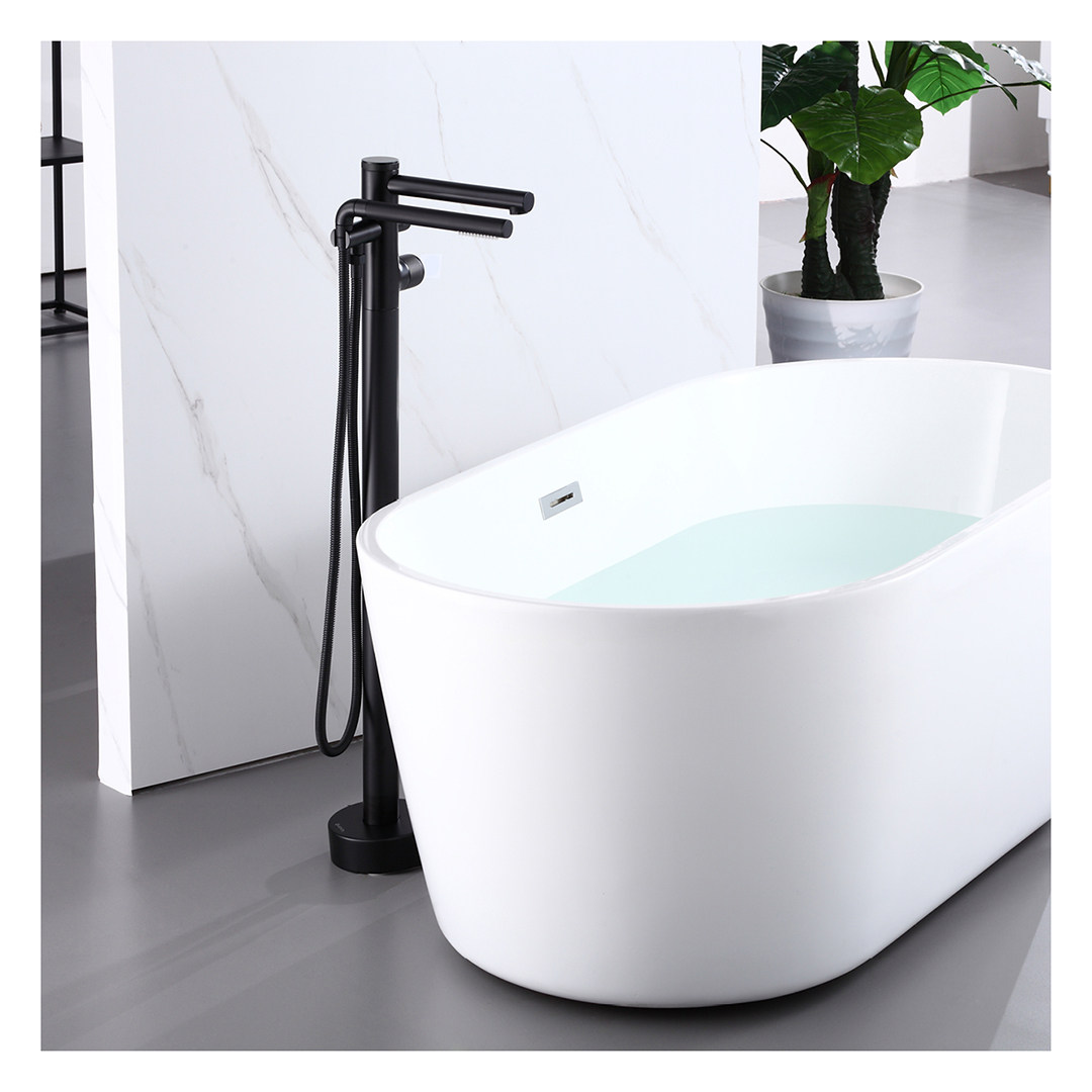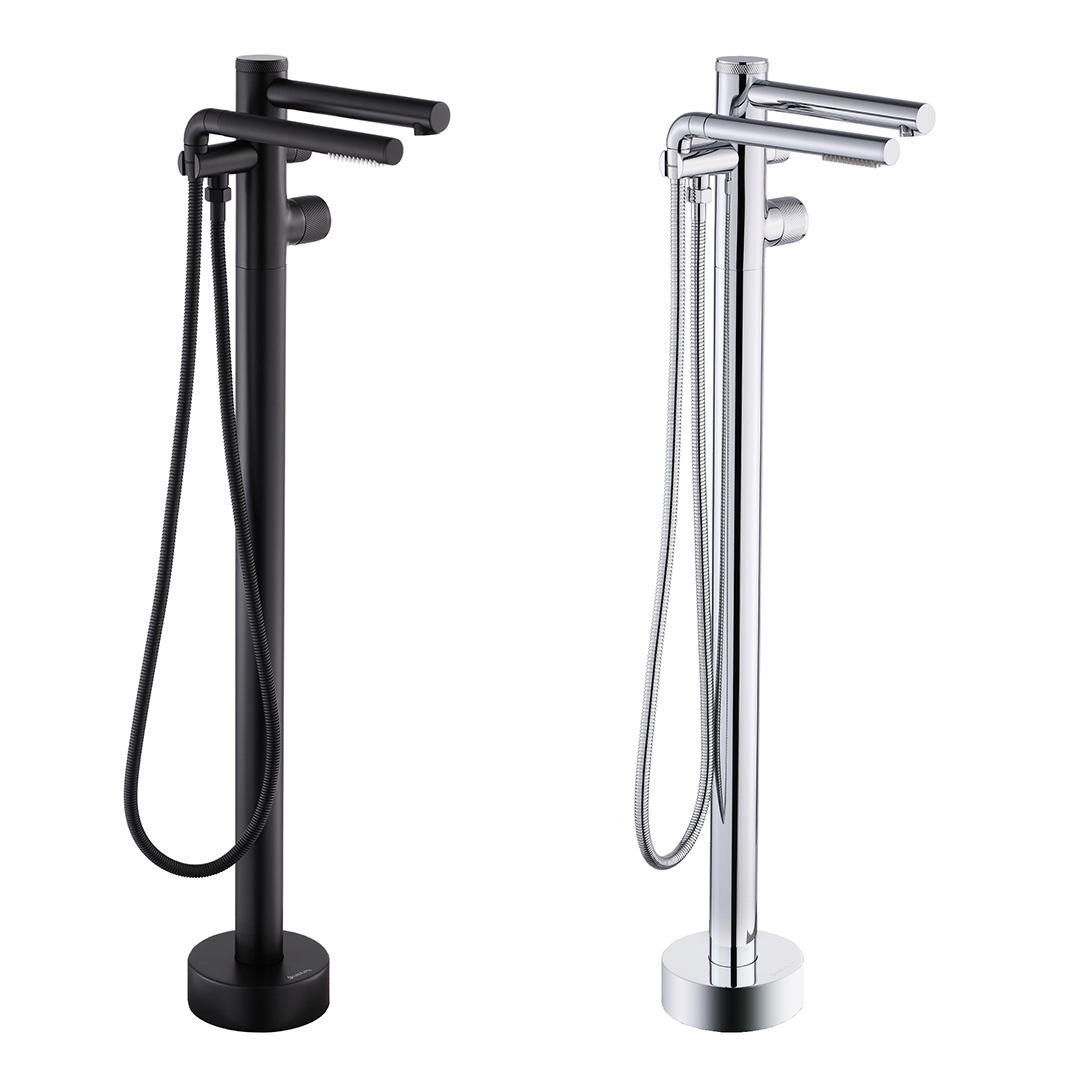 Robinet de baignoire autoportant en noir mat. Corps en laiton, cartouche céramique, douchette à main.