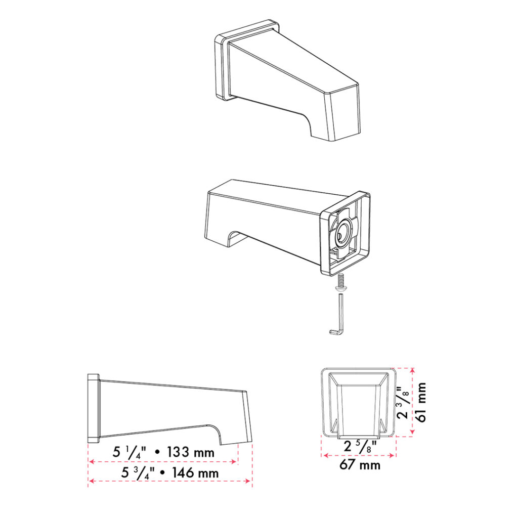 BEC DE BAIN CARRÉ : Fabriqué en zinc; À glissement; S’installe sur tuyau en cuivre 1/2 po; 5-1/4 pouces (13,3 cm).