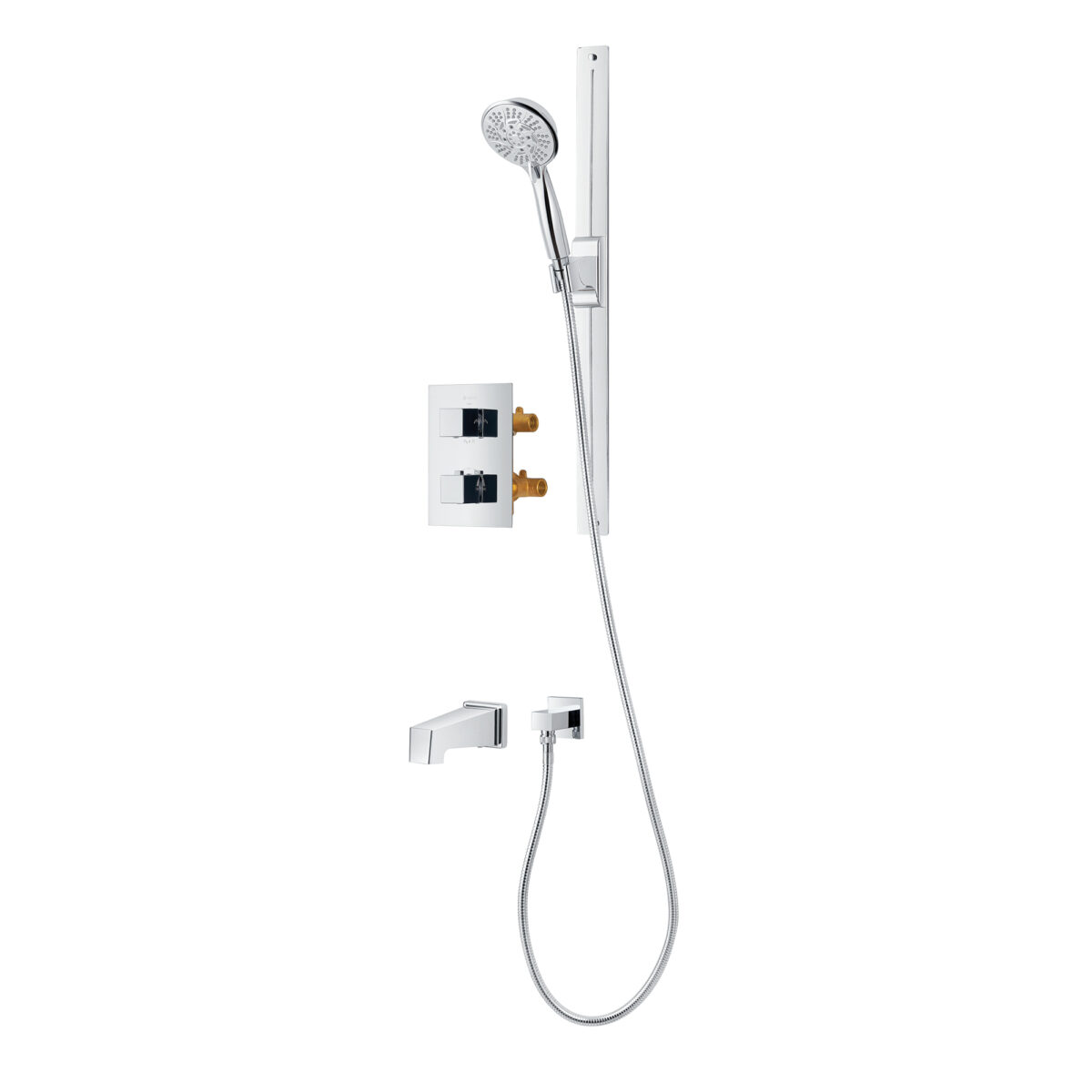Ensemble bain-douche thermostatique carré à 4 voies avec douchette magnétique 10 réglages sur barre de douche par akuaplus®