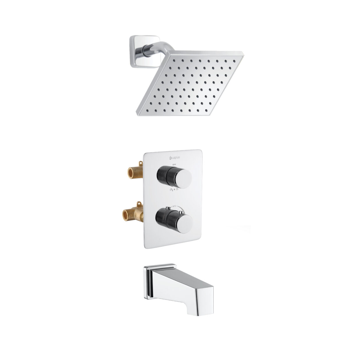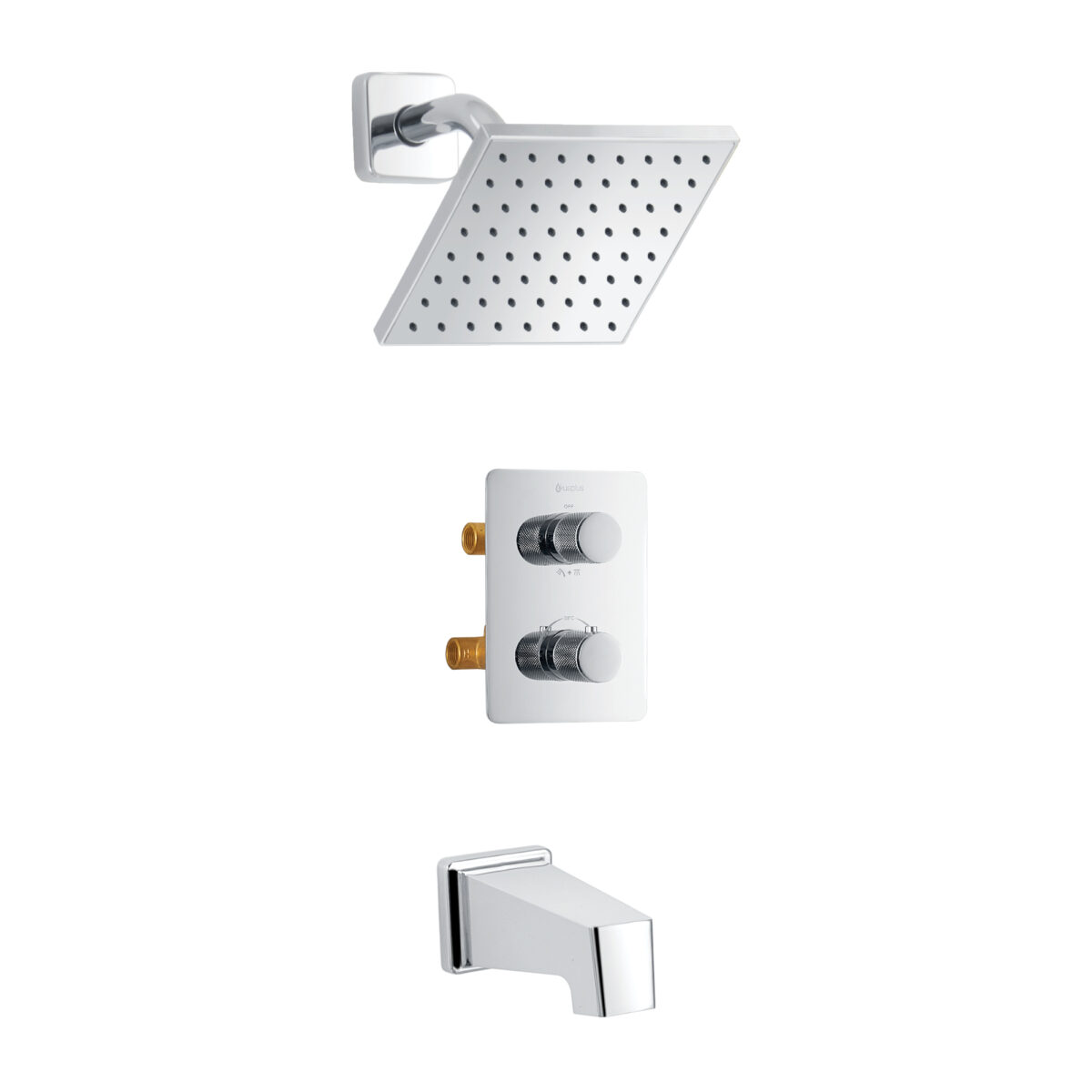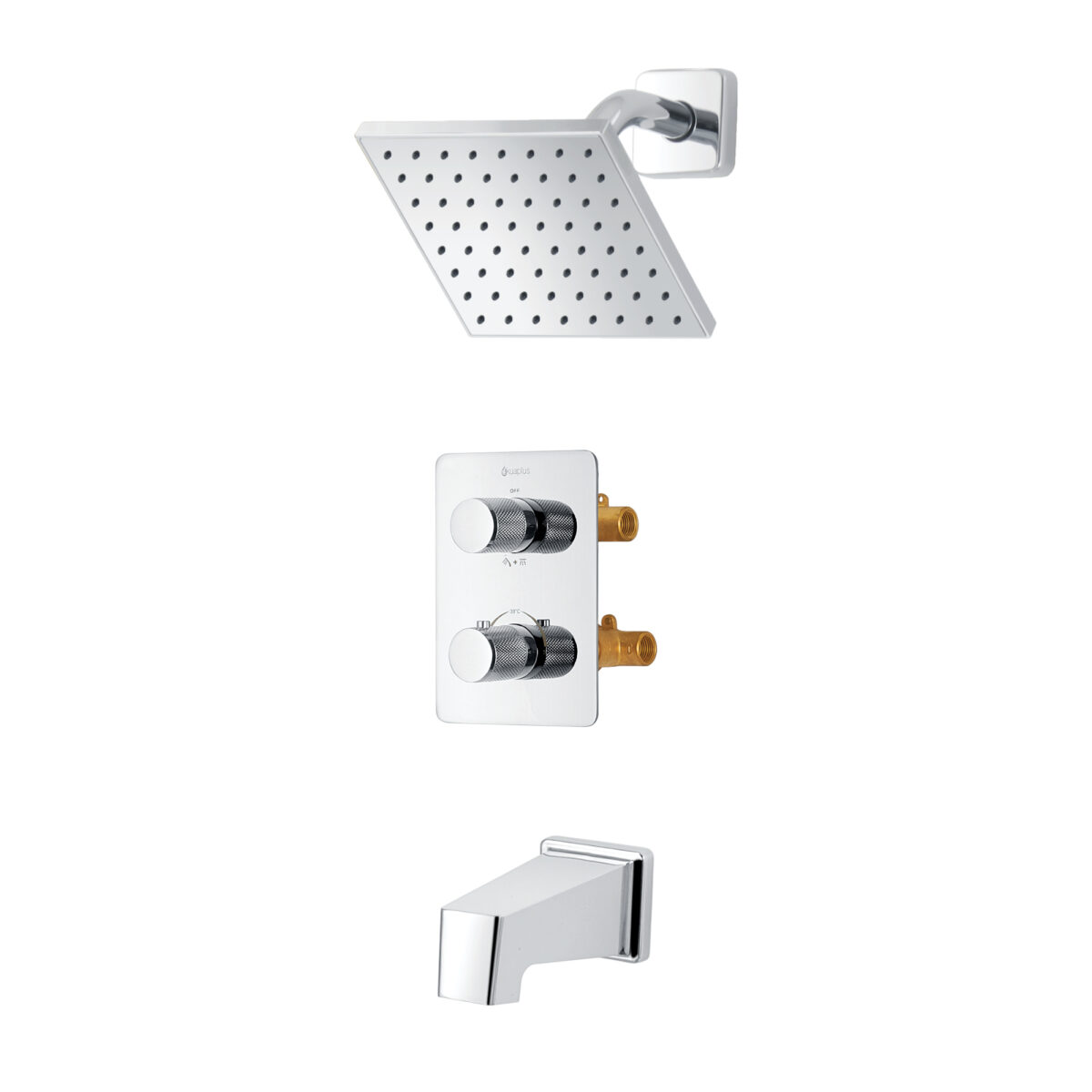 Ensemble bain-douche thermostatique carré à 4 voies avec pomme de douche pluie par akuaplus®