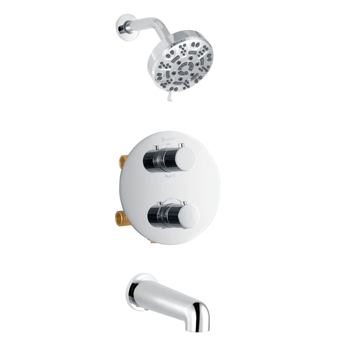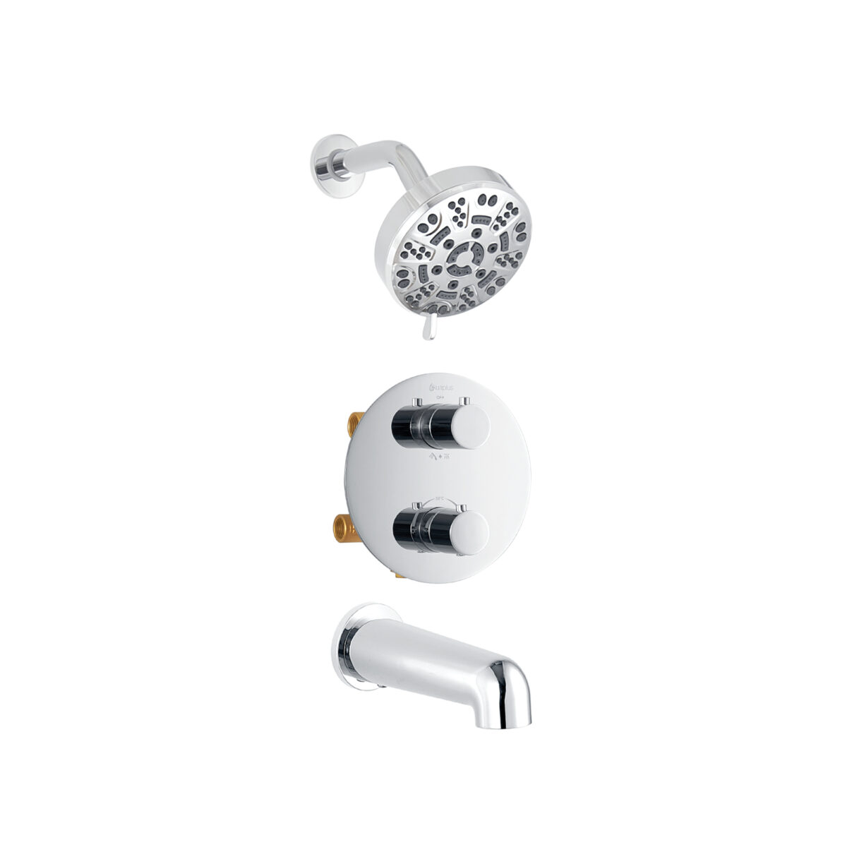 Ensemble bain-douche thermostatique rond à 4 voies avec pomme de douche à 8 réglages par akuaplus®