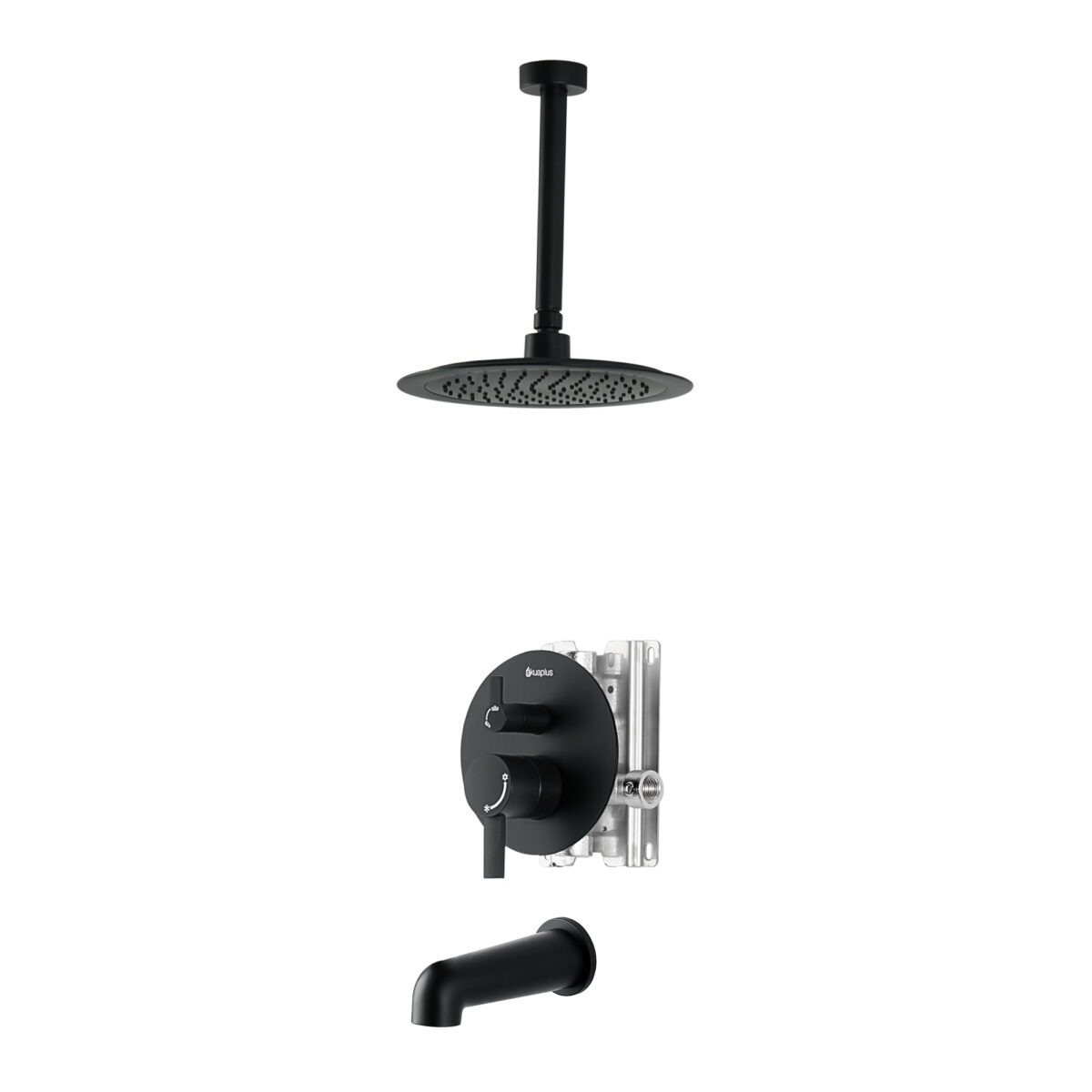 L’ensemble bain-douche à pression équilibrée akuaplus® est conçu pour offrir performance, fiabilité et confort dans les installations résidentielles modernes. La valve de douche en laiton est équipée d’une cartouche à pression équilibrée permettant de maintenir une température d’eau stable et de réduire les variations soudaines de pression. Elle comprend une soupape d’arrêt intégrée ainsi que des connexions femelle filetées 1/2 po pour une installation sécuritaire et durable. Le déviateur 3 voies permet d’utiliser le pommeau de douche, le bec de bain ou les deux simultanément selon les besoins. L’ensemble inclut un bras de douche pour plafond de 8 po (20,3 cm) en laiton avec bride, assurant une installation solide et élégante. Le pommeau de douche pivotant de 9 1/2 po (24,1 cm) en ABS est muni d’une rotule en laiton pour un ajustement précis de l’angle. Il est doté de buses anti-calcaire faciles à nettoyer, favorisant une performance durable et un entretien simplifié. Le bec de bain à glissement en zinc de 7 3/4 po (19,5 cm) s’installe facilement sur un tuyau en cuivre standard. Le débit maximal est de 9,5 L/min (2,5 gal US/min). Conçu pour les applications résidentielles, cet ensemble est certifié cUPC, garantissant sa conformité aux normes nord-américaines de plomberie.