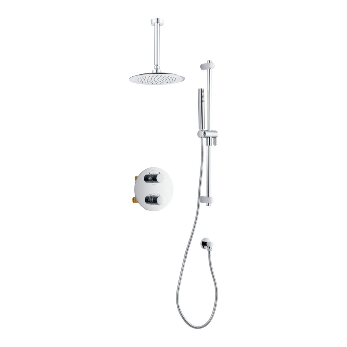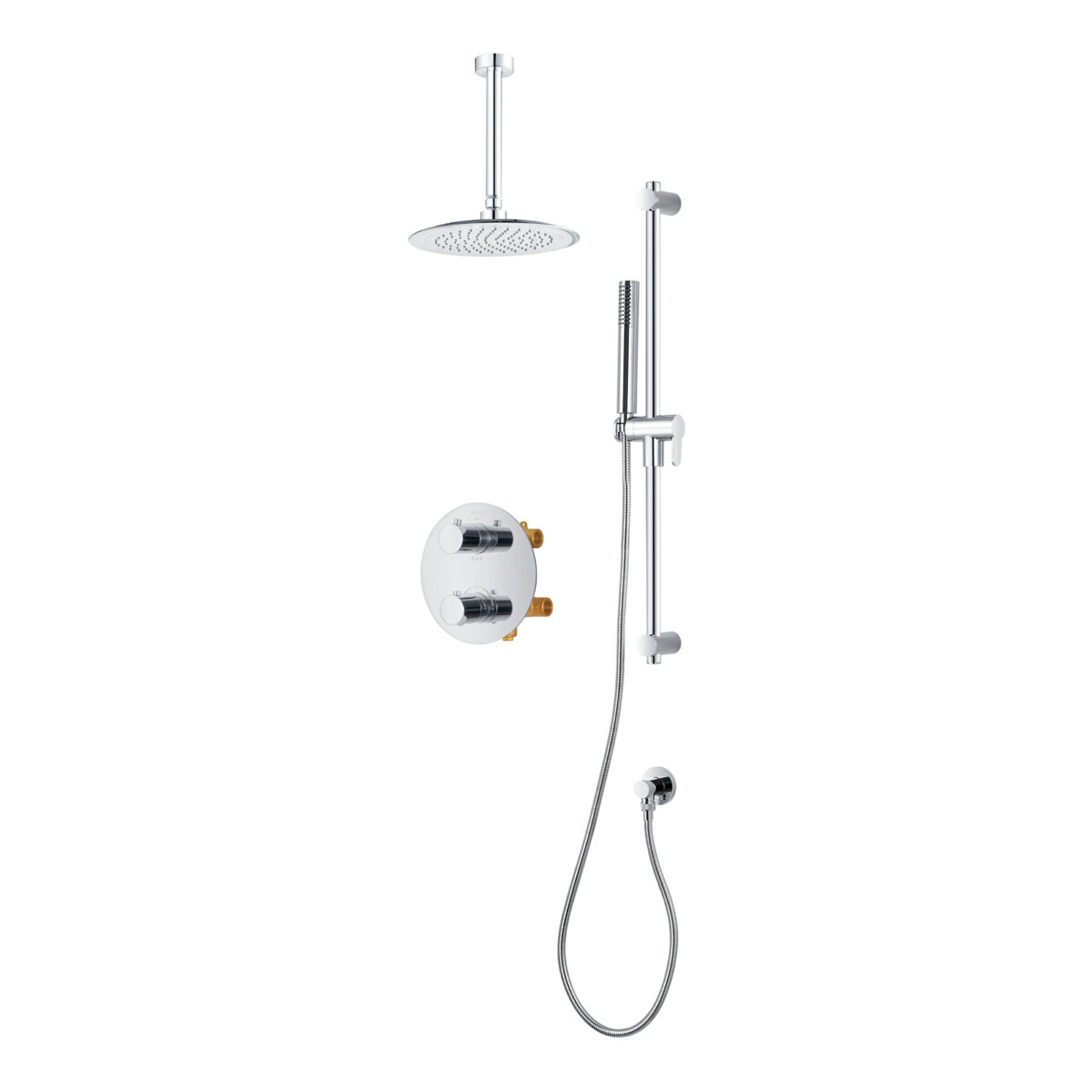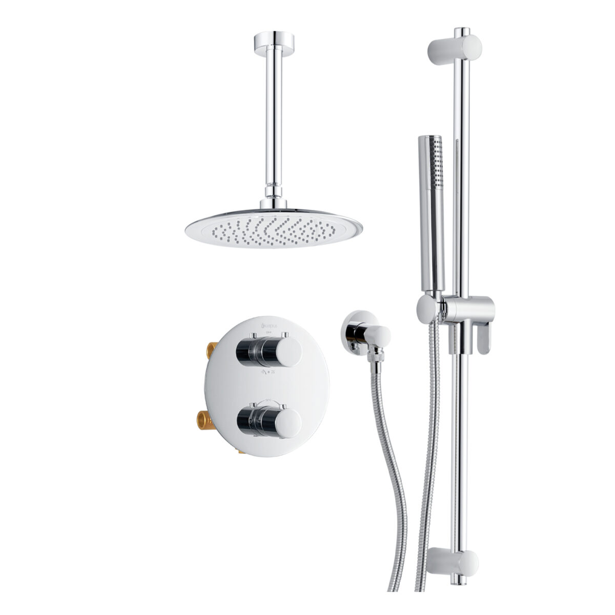 Ensemble de douche thermostatique rond à 4 voies avec pommeau de douche pluie et douchette sur barre de douche par akuaplus®