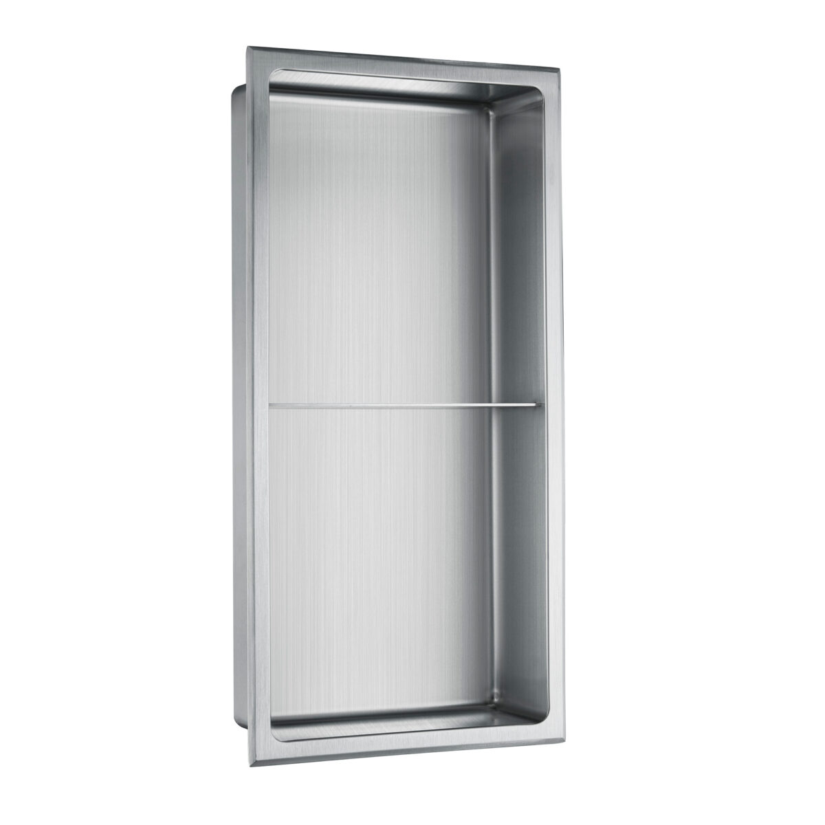 Niche de douche encastrée LAYLA à 2 tablettes en acier inoxydable 304 de calibre 18, fini inox brossé, 12 po x 24 po x 4 po (30,5 x 61 x 10,2 cm), entièrement étanche et certifiée cUPC.