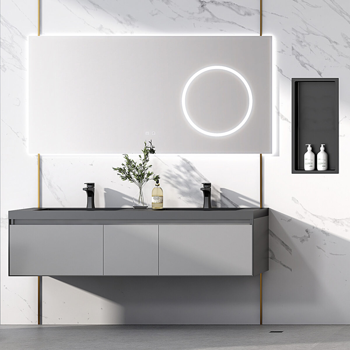 La niche de douche encastrée LAYLA par akuaplus® est fabriquée en acier inoxydable 304 de calibre 18, offrant une excellente résistance à la corrosion et une durabilité supérieure pour les installations résidentielles. D’une profondeur de 4 po (10,2 cm), elle est offerte en plusieurs grandeurs afin de s’adapter à différentes configurations de salle de bain. Elle constitue une solution idéale comme niche de douche encastrée en inox, niche murale moderne ou étagère murale pour salle de bain. Disponible en noir mat avec peinture électrostatique cuite au four ou en fini inox brossé, elle présente des coins arrondis de 3/8 po (1 cm) de rayon, assurant un rendu épuré et sécuritaire. Sa pente légère intégrée favorise l’écoulement de l’eau. Entièrement étanche, elle est facile à nettoyer et simple à installer. Elle peut être installée horizontalement ou verticalement, avec 1 ou 2 tablettes selon la configuration choisie. Conçue pour s’installer par-dessus le revêtement mural existant, elle ne nécessite aucun carrelage supplémentaire. Cette niche est certifiée cUPC, assurant sa conformité aux normes nord-américaines de plomberie.