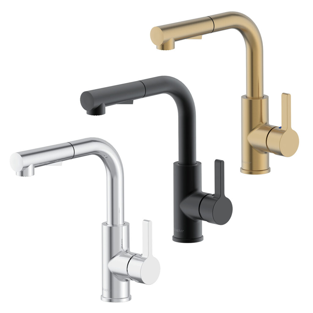 ROBINET DE CUISINE MONOTROU : Douchette rétractable à 2 jets qui se repositionne en douceur; Bec pivotant réglable à 360°; Buses anti-calcaire faciles à nettoyer; Cartouche en céramique; Levier unique permettant de contrôler le volume d’eau et le réglage de la température; Boyau tressé en nylon; Débit de 6,81 L/min (1,8 gal US/min); Installation facile.