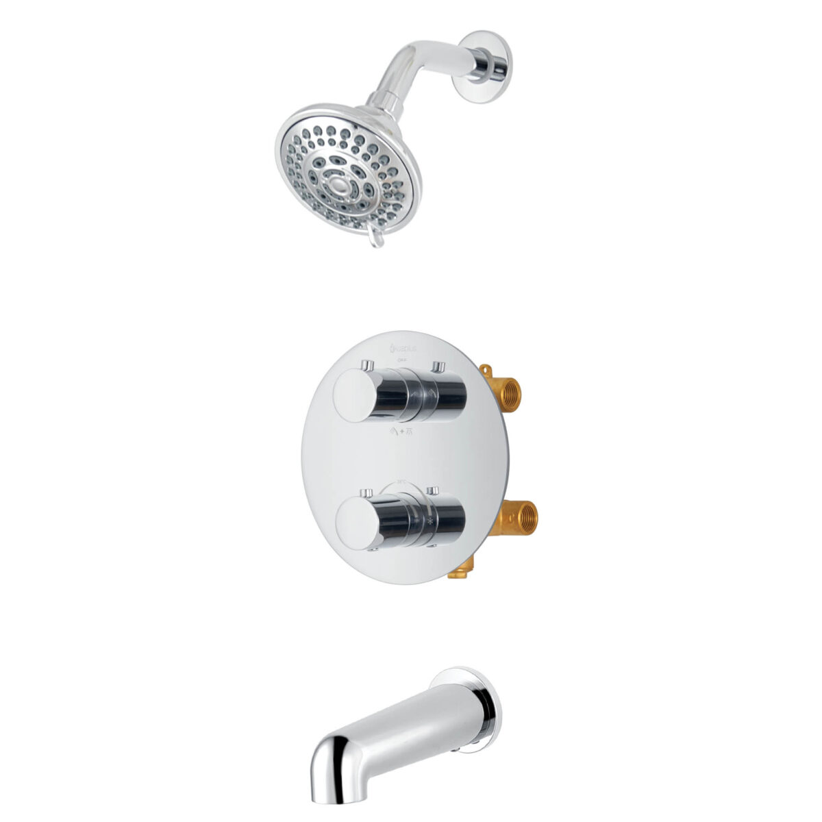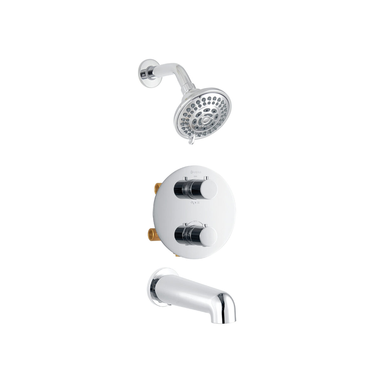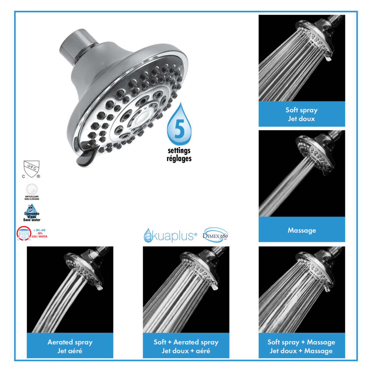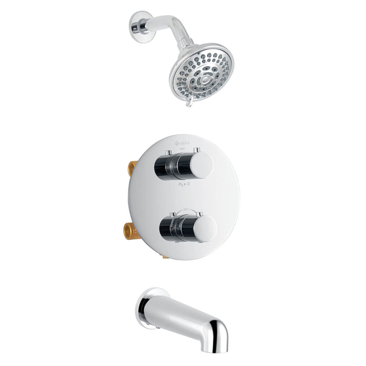 Ensemble bain-douche thermostatique rond à 4 voies avec pomme de douche à 5 réglages par akuaplus®