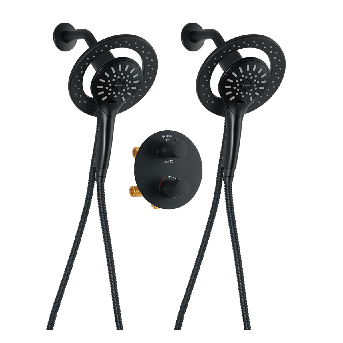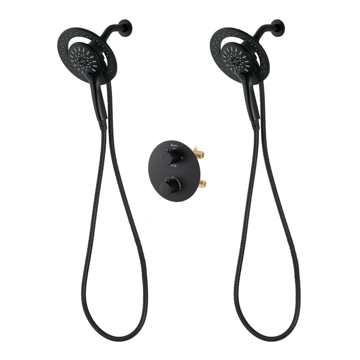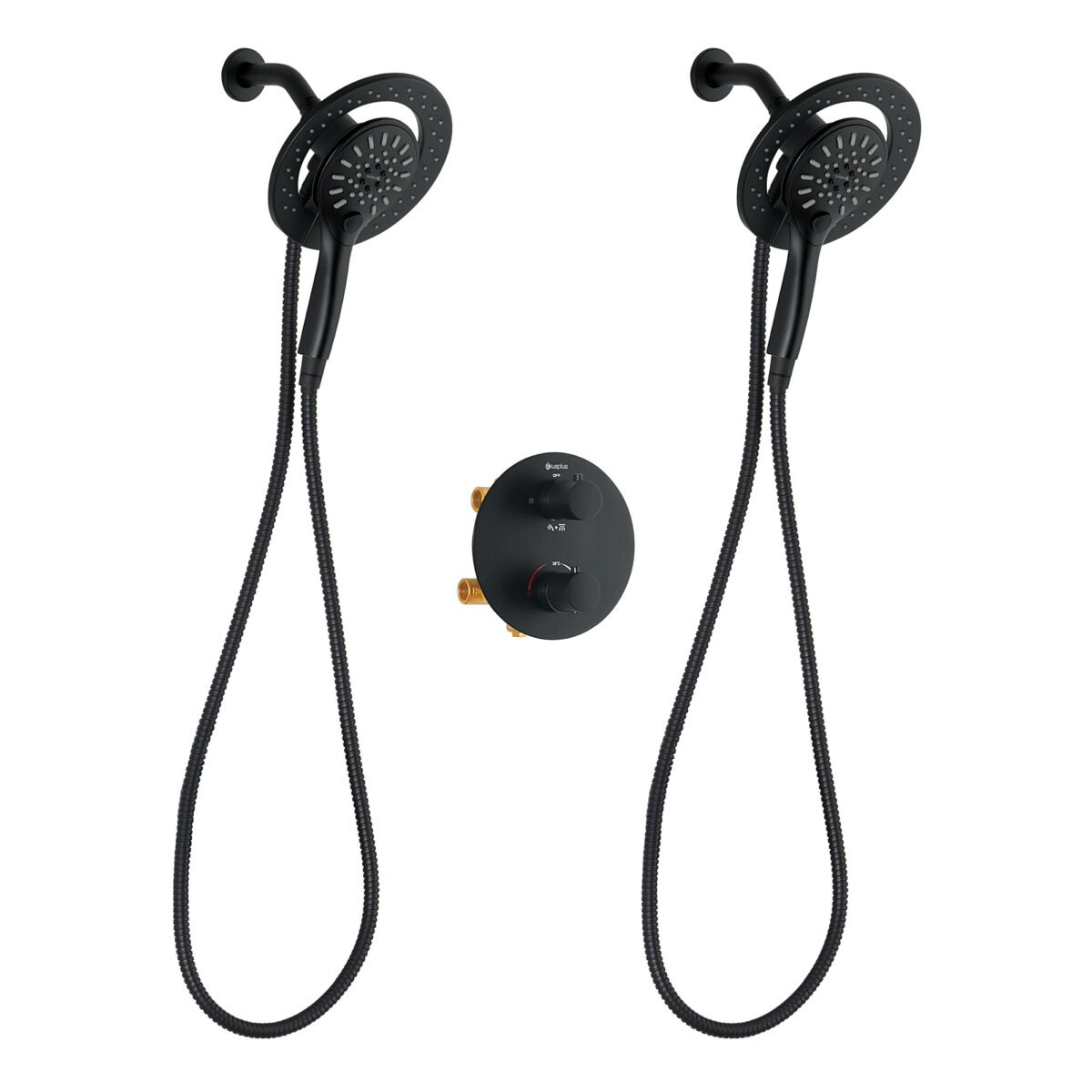 Ensemble de douche duo thermostatique rond à 4 voies avec 2 ensembles pommeau et douchette magnétique à 3 réglages par akuaplus®