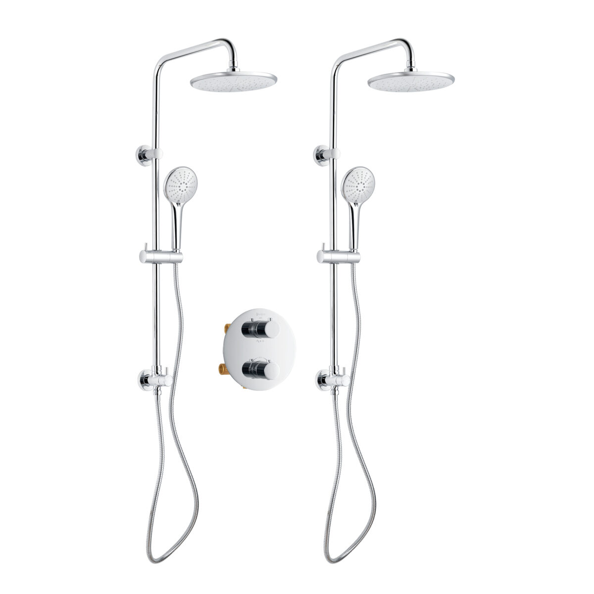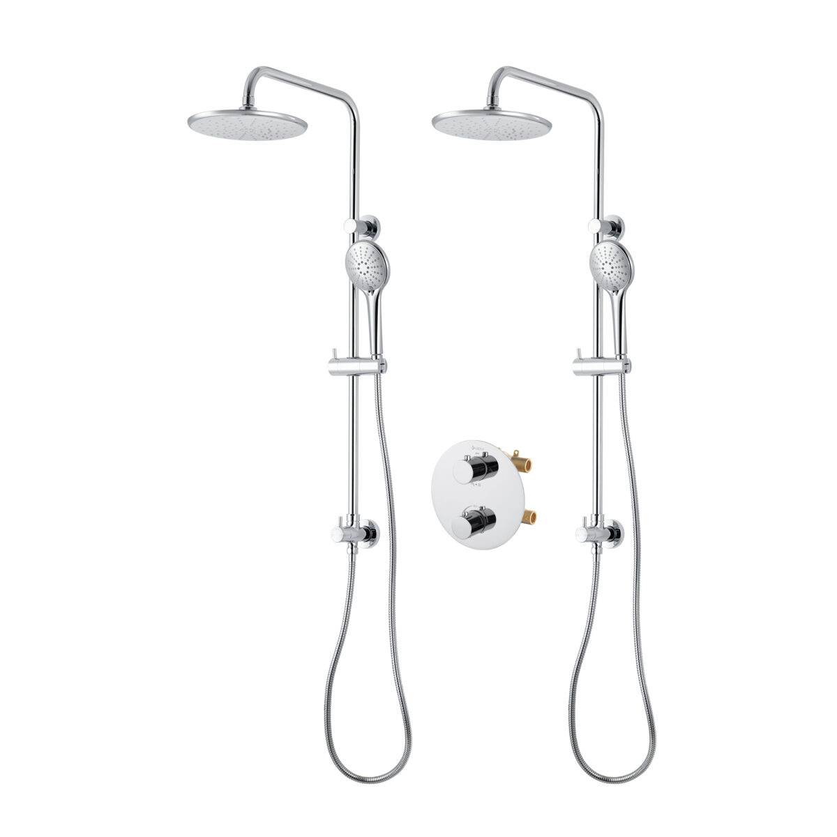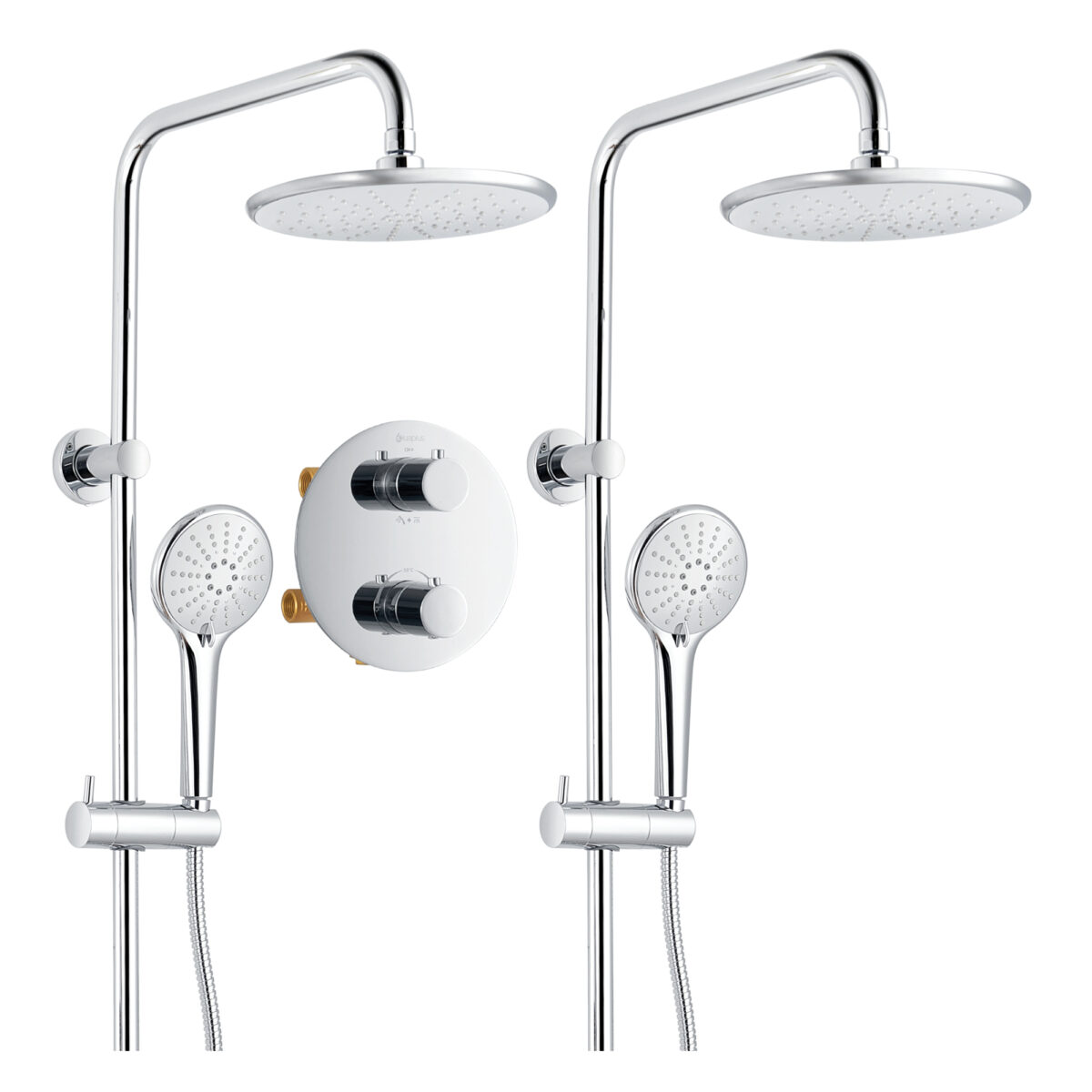 Ensemble de douche duo thermostatique rond à 4 voies avec 2 systèmes de douche pluie et douchette 3 réglages par akuaplus®