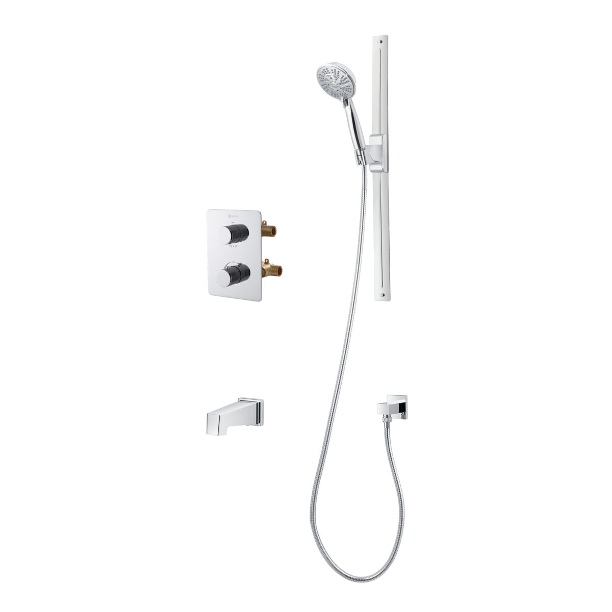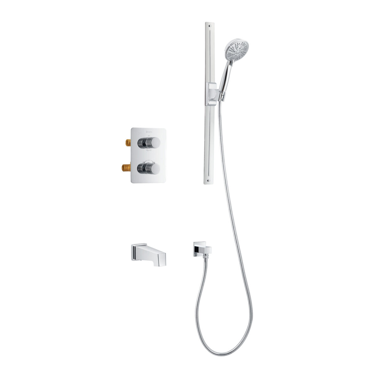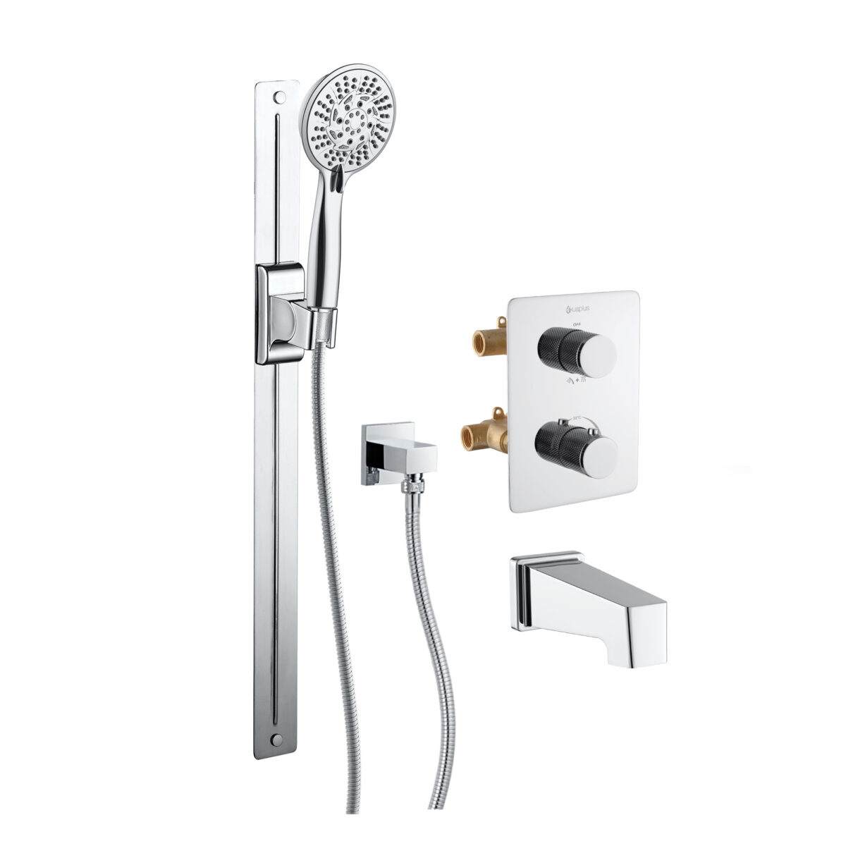 Ensemble bain-douche thermostatique carré à 4 voies avec douchette magnétique 10 réglages sur barre de douche par akuaplus®