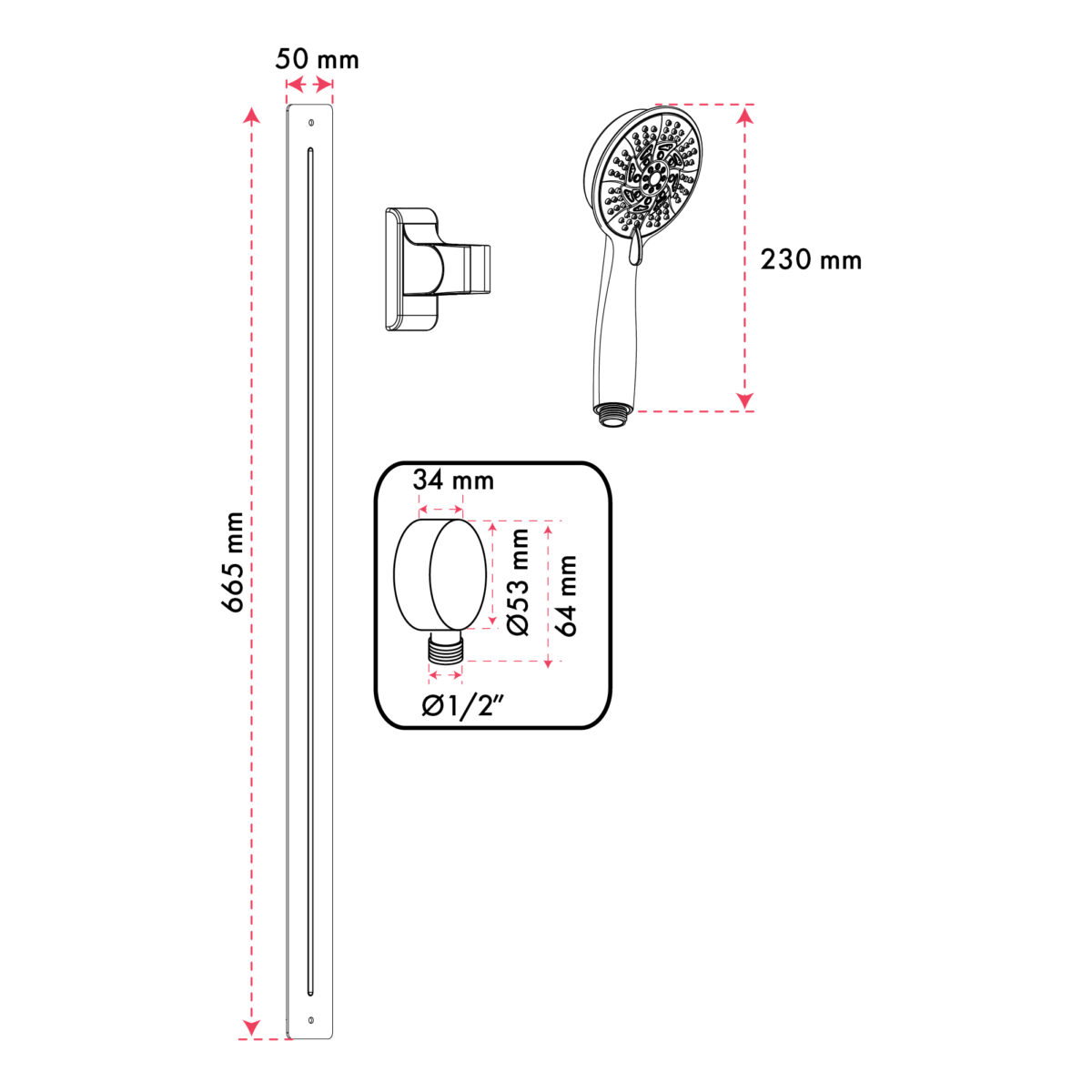 L’ensemble bain-douche magnétique thermostatique carré par akuaplus® est conçu pour offrir un contrôle précis de la température et une flexibilité optimale dans les installations résidentielles modernes. La valve de douche en laiton est équipée d’une cartouche thermostatique et d’une soupape d’arrêt intégrée, assurant un fonctionnement fiable et sécuritaire. Le déviateur 4 voies permet d’utiliser la douchette, le bec de bain, les deux simultanément ou d’interrompre l’écoulement selon les besoins. Les connexions femelles filetées de 1/2 po assurent une compatibilité avec les systèmes de plomberie nord-américains standards. La barre de douche en acier inoxydable mesure 26 3/16 po (66,5 cm) et peut être installée facilement à l’aide du ruban adhésif double face inclus, simplifiant l’installation sans compromettre la stabilité. La douchette à main en ABS à 10 réglages, dotée de buses anti-calcaire faciles à nettoyer, offre un débit de 9,5 L/min (2,5 gal US/min) conforme aux normes d’économie d’eau. Son support magnétique ajustable en ABS permet un positionnement précis et un maintien sécurisé. L’ensemble comprend également un boyau flexible de 59 po (1,5 m) en acier inoxydable à double agrafage avec raccords en laiton, assurant durabilité et fiabilité. Le raccord coudé en laiton (mâle/mâle, 1/2 po) permet une connexion sécurisée, tandis que le bec de bain à glissement en zinc, mesurant 5 3/4 po (14,6 cm), assure un remplissage efficace de la baignoire. Cet ensemble est certifié cUPC, garantissant sa conformité aux normes nord-américaines de plomberie.
