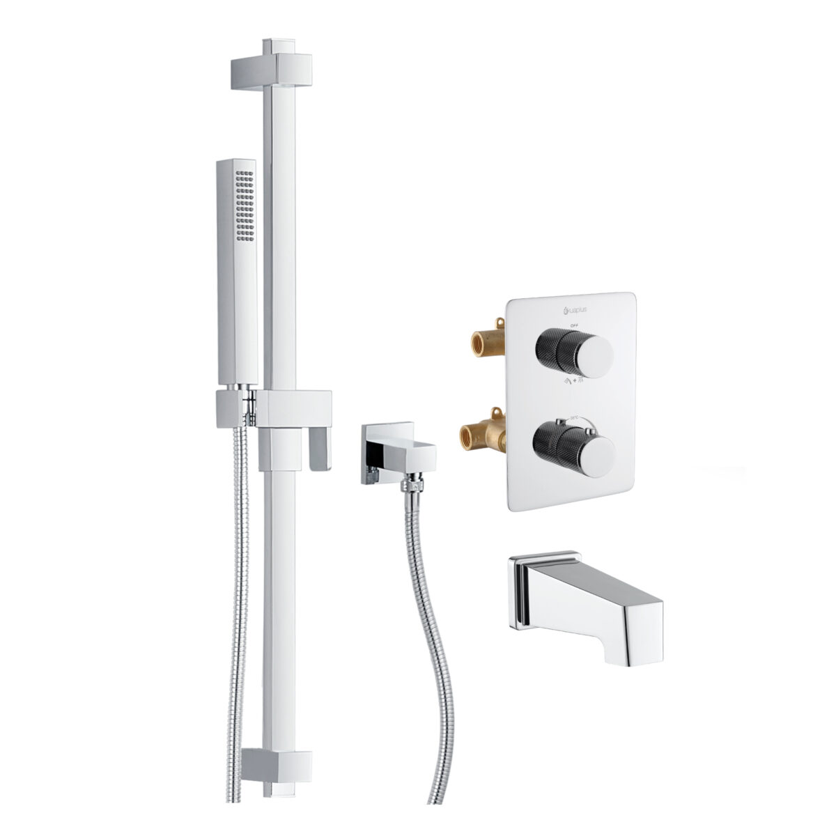 Ensemble bain-douche thermostatique carré à 4 voies avec douchette sur barre de douche akuaplus®