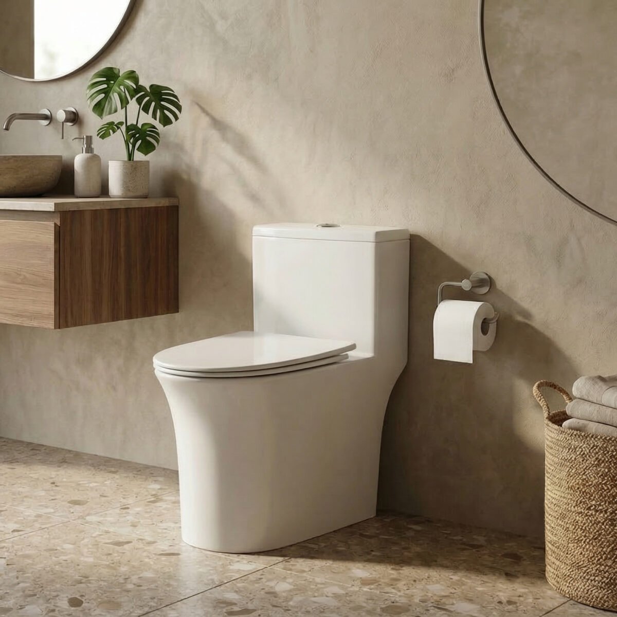 Toilette monobloc à double chasse d’eau fabriquée en porcelaine antimicrobienne, dotée d’une cuve allongée offrant confort et performance. Son système de chasse siphonique assure un débit d’évacuation de 4,0 / 6,0 LPF (1,06 / 1,6 gal US par chasse) et une performance MAP de 1000 g. Conçue pour une installation standard avec une distance du mur de 12 po, cette toilette convient parfaitement aux installations résidentielles. Elle est fournie avec un siège à fermeture lente ainsi que des cache-vis inclus pour une finition soignée. Dimensions hors tout : 65 cm (L) × 37,5 cm (l) × 68,5 cm (H). Conforme aux exigences ADA, avec une hauteur de siège de 42 cm du sol.