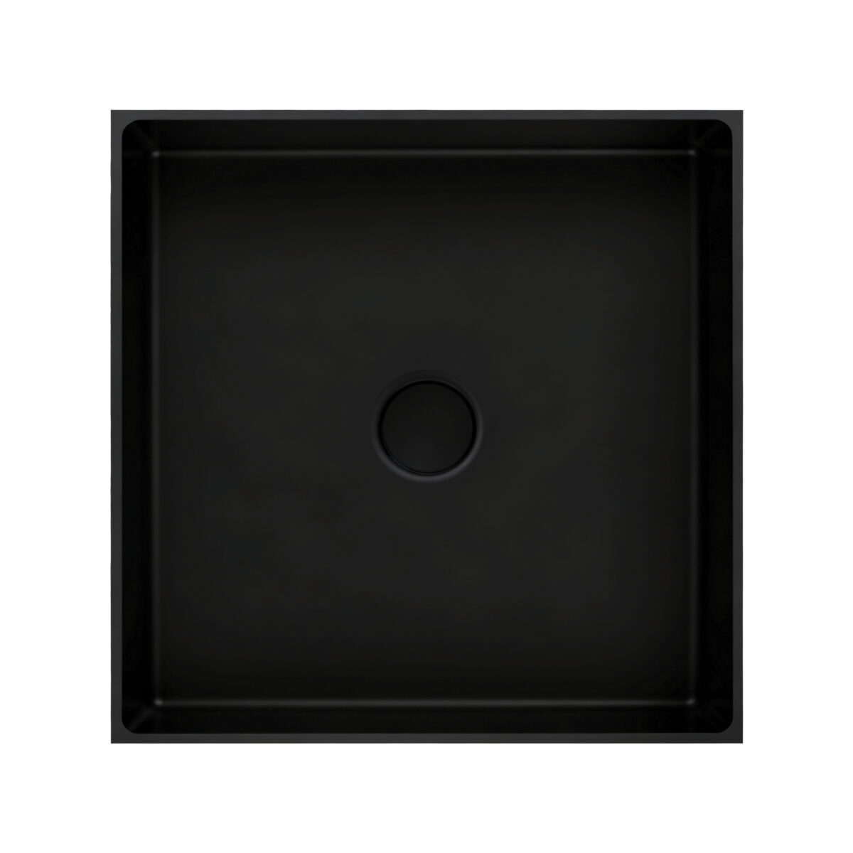 Vasque carrée en acier inoxydable 304 au fini noir mat, installation en surface, crépine incluse.