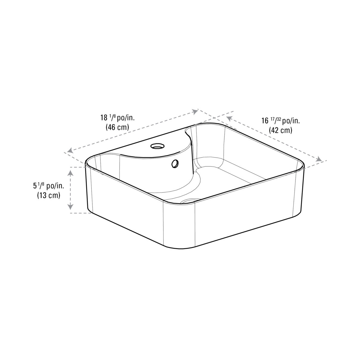 | Dimensions | 18 1/8 po × 16 9/16 po × 5 1/8 po (46 × 42,1 × 13 cm) |