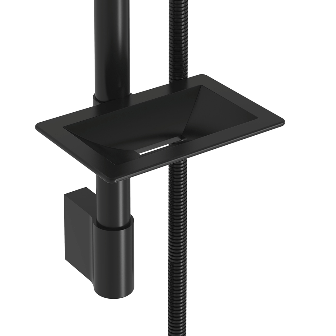 ADJUSTABLE SHOWER POST SYSTEM: Stainless steel 28-3/8-inch (72 cm) shower post; 9-setting ABS handheld shower with easy-to clean anti-limescale nozzles; Adjustable handheld shower bracket and soap dish made of ABS; Flexible 59-inch (1.5 m) double interlocking stainless steel hose with brass fittings; Flow rate regulator of 9.5 L/min (2.5 US gal/min); Wall-mounting hardware included.