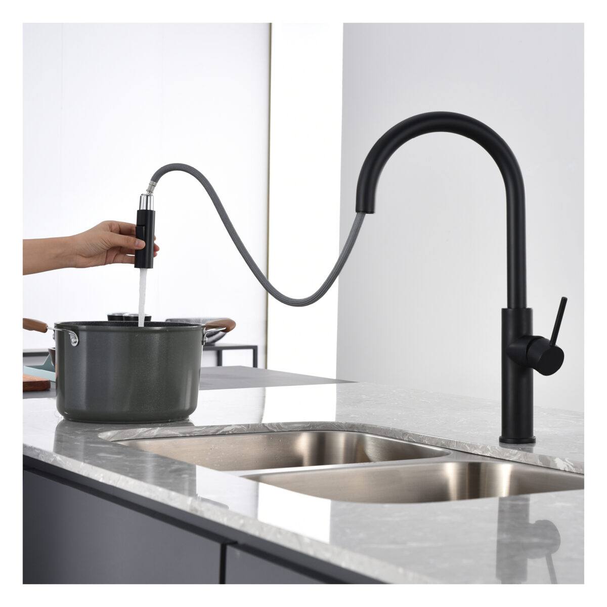 1- Handle Kitchen faucet in a matte black finish.