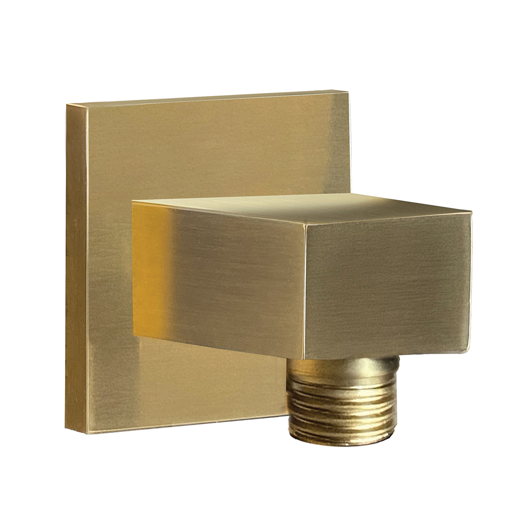 SQUARE ELBOW FITTING: Made of brass; Connector for shower hose; 1/2-inch threaded connections.
