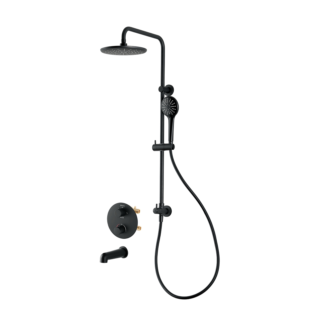 Thermostatic Bath-Shower set in a matte black finish.