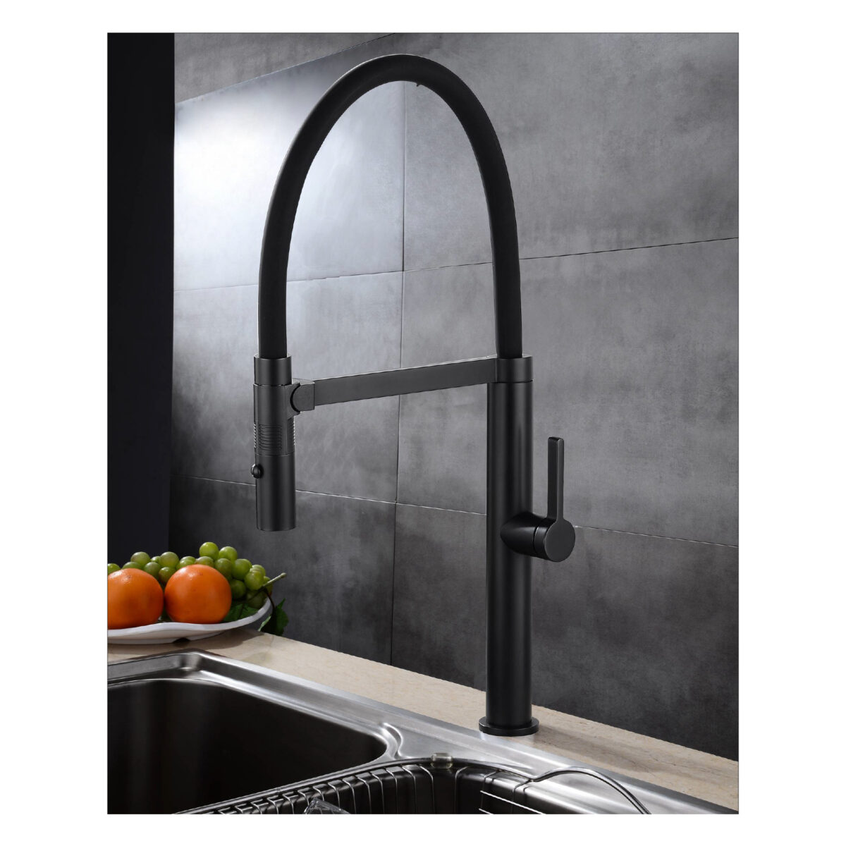 Easy to install magnetic flexible kitchen faucet in a matte black finish.