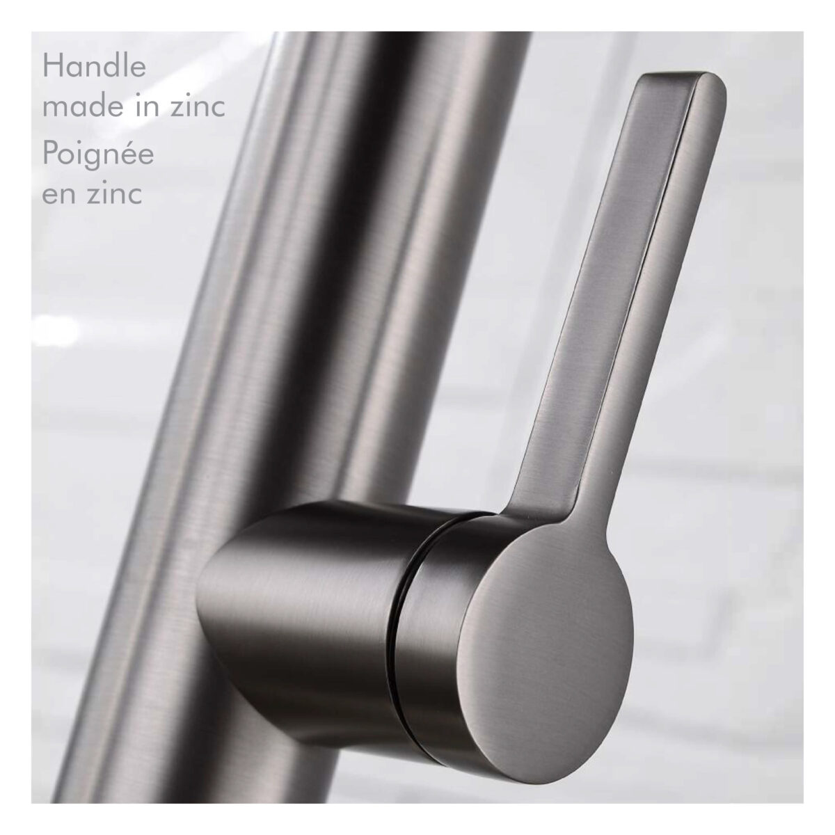 The akuaplus® CLARA single-hole magnetic kitchen faucet combines performance, durability, and modern design. It features a 2-function metal hand shower with smooth repositioning, secured by an integrated magnetic holder. Easy-to-clean anti-limescale nozzles help maintain optimal performance over time. The 360° swivel arm provides extended reach and flexibility, ideal for single or double-basin sinks. The faucet is equipped with a ceramic cartridge for durability and precise control. The single handle allows effortless adjustment of water flow and temperature. It includes a flexible TPV (thermoplastic vulcanizate) hose and a braided nylon water supply hose, ensuring reliable and long-lasting installation. Maximum flow rate: 6.81 L/min (1.8 US gal/min). Installation is quick and straightforward. The 3-hole deck plate is sold separately. Designed for residential applications, this faucet is cUPC certified, ensuring compliance with North American plumbing standards.