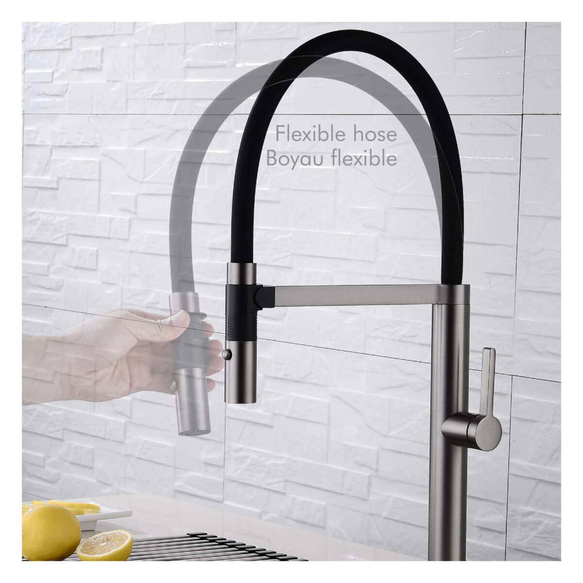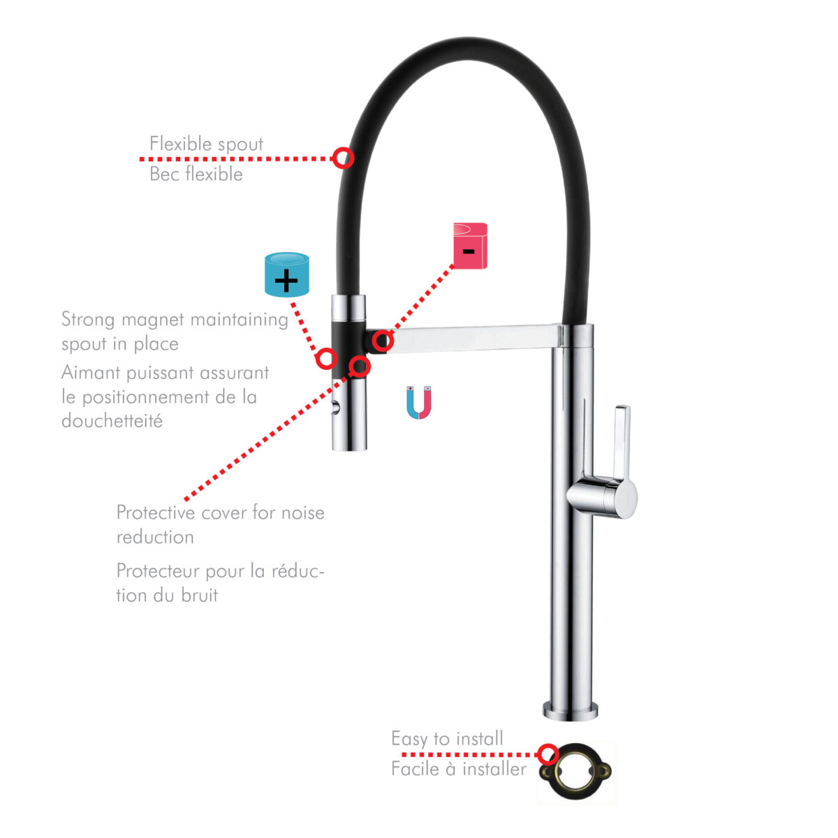 Easy to install magnetic flexible kitchen faucet.