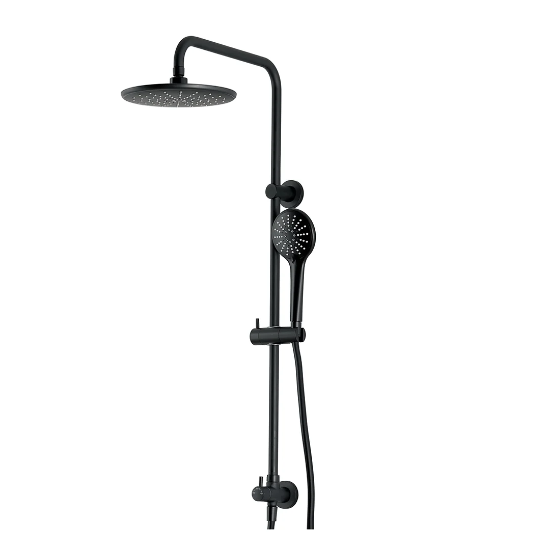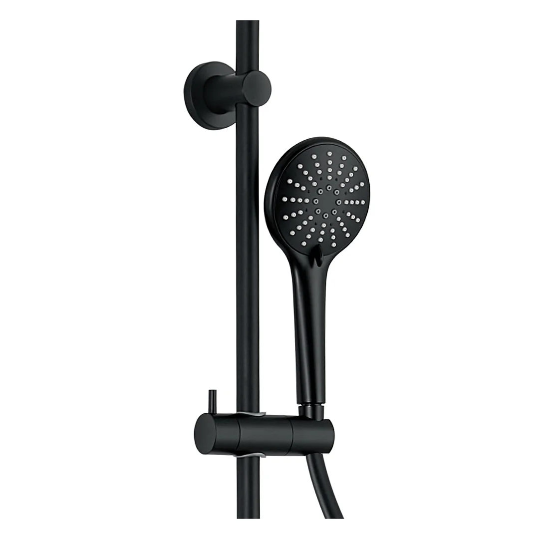 3-way Shower system featuring an 8-5/8 inches (22 cm) swiveling rain Showerhead, and a 3-setting handheld Shower in a matte black finish. This combo has no valve and will replace your existing Shower head.
