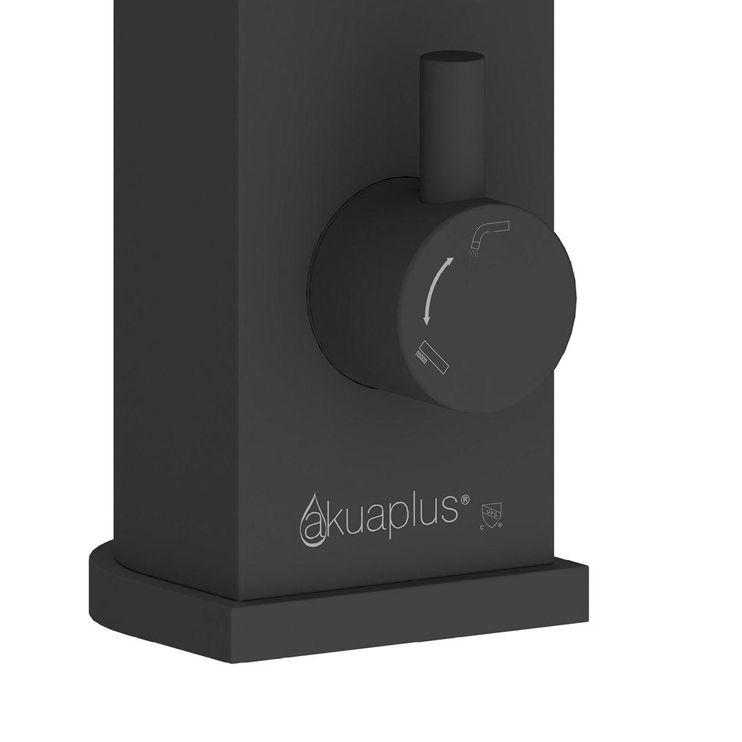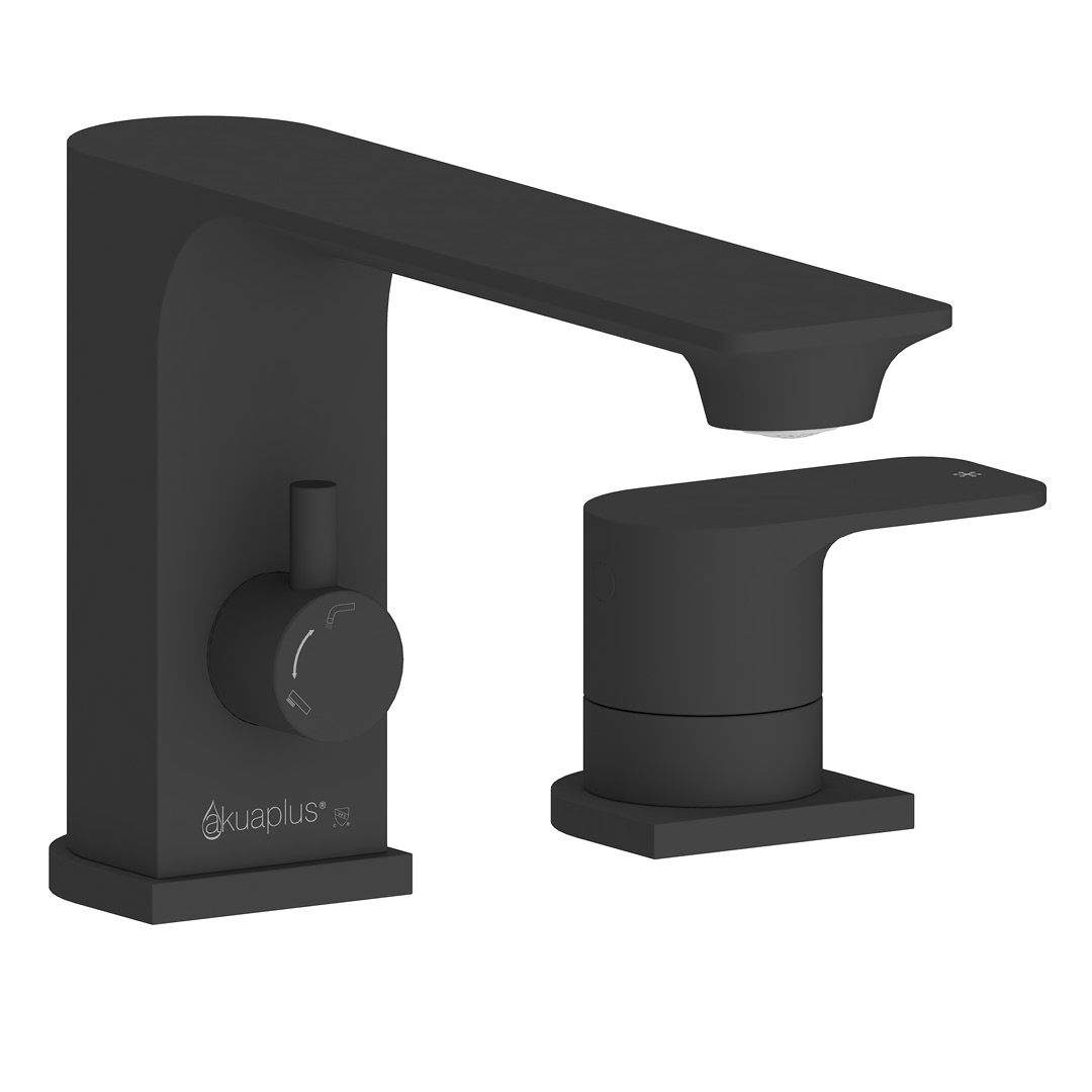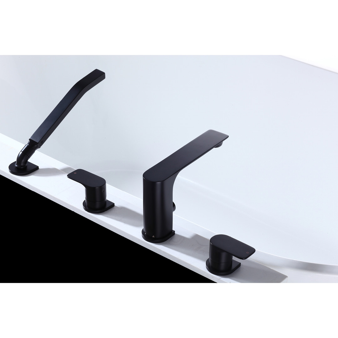 BATHTUB FAUCET: Made of brass; 4-piece for Roman bathtub; 2 handles; Ceramic cartridge; Hand shower with 45° connection, check valve and flow rate of 9.5 L/min (2.5 US gal/min); Bathtub spout water flow of 20 L/min (5.28 US gal/min); Water supply lines included.