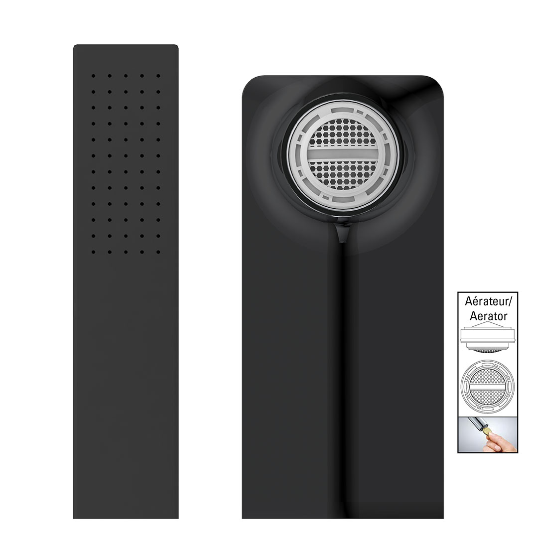 BATHTUB FAUCET: Made of brass; 3-piece for Roman bathtub; Single handle; Ceramic cartridge; Hand shower with 45° connection, check valve and flow rate of 9.5 L/min (2.5 US gal/min); Bathtub spout water flow of 20 L/min (5.28 US gal/min); Water supply lines included.
