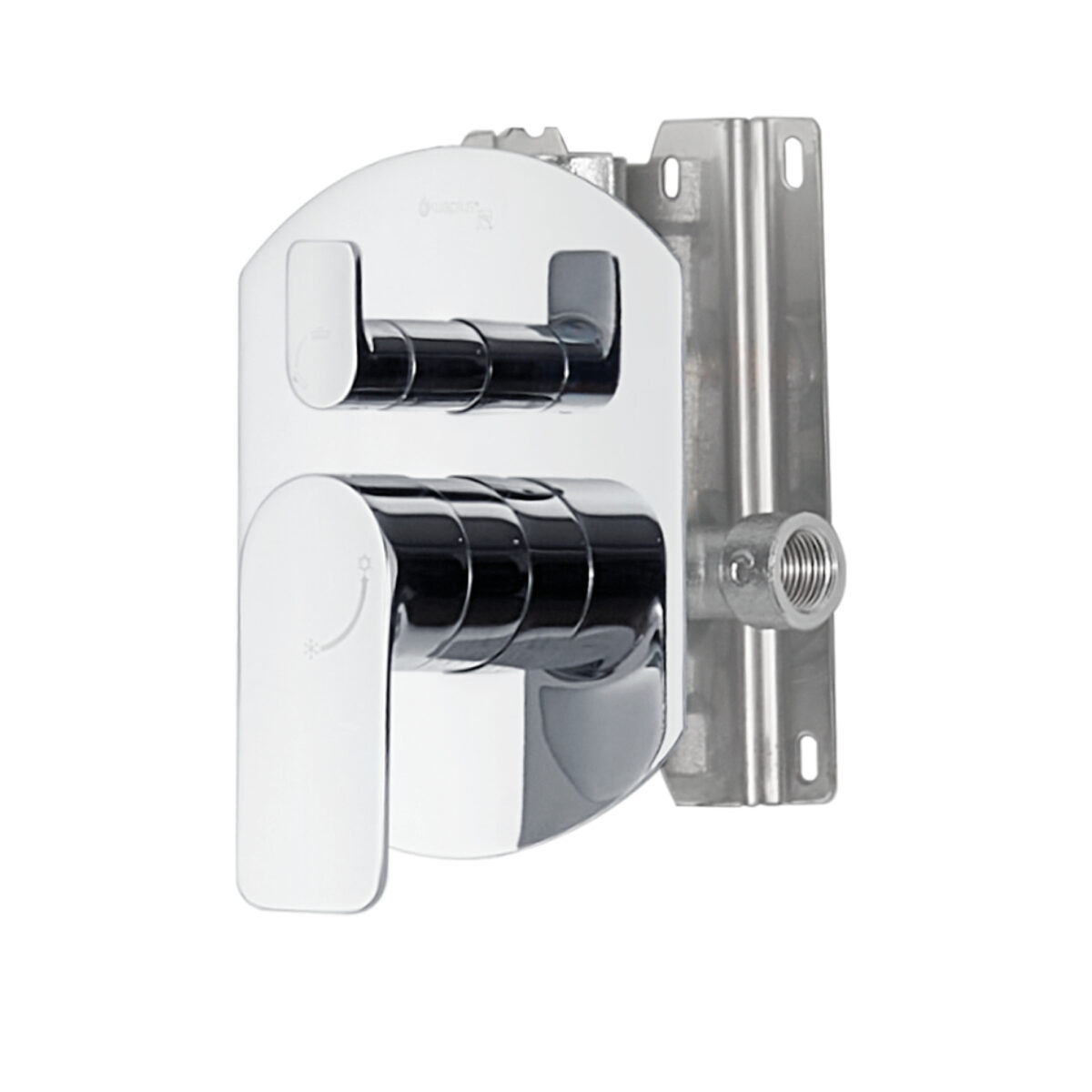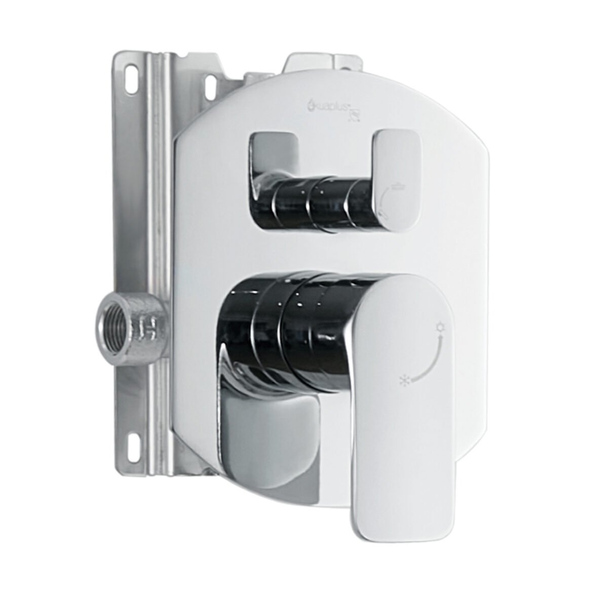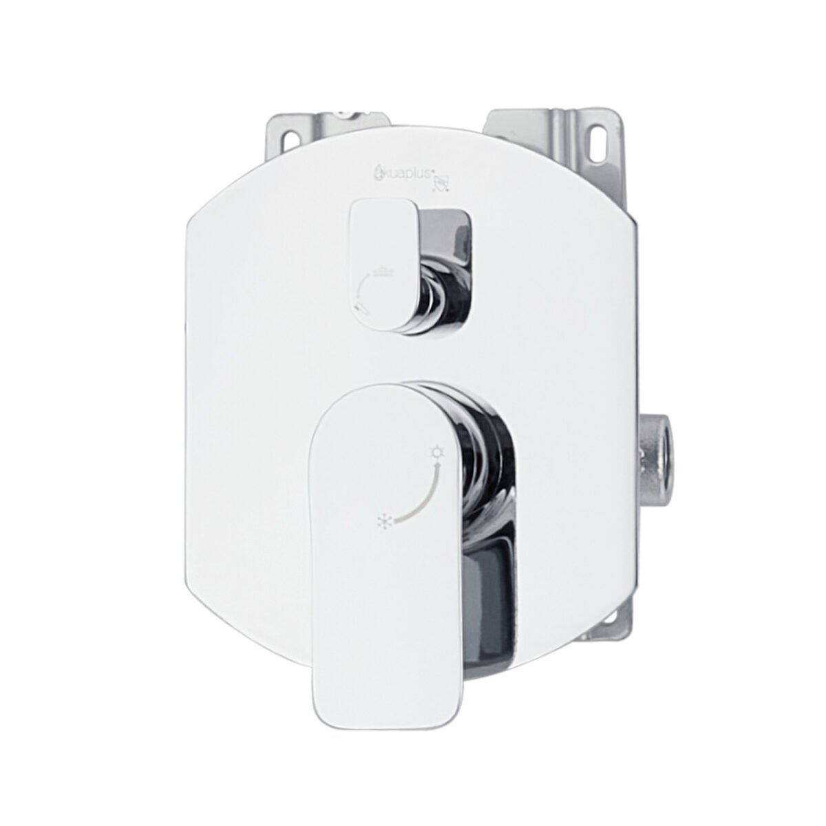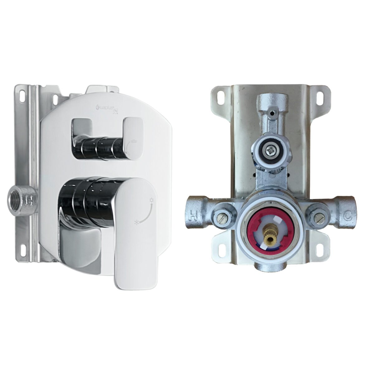 The ELENA akuaplus® pressure balance shower set is designed to deliver performance, versatility, and durability for modern residential bathroom installations. Made of brass and stainless steel, the set includes a brass shower valve equipped with a pressure balance cartridge that maintains consistent water temperature while minimizing sudden pressure fluctuations. The 3-way diverter allows use of the showerhead, the hand shower, or both simultaneously. The valve includes an integrated shut-off valve and 1/2" female threaded connections compatible with standard plumbing installations. The set features a 15 3/4" (40 cm) wall mount shower arm with flange for secure installation. The 8" (20 cm) swiveling showerhead includes easy-to-clean anti-limescale nozzles for simplified maintenance. The 1-setting hand shower provides straightforward functionality. A 26" (66 cm) shower post with adjustable hand shower holder ensures ergonomic flexibility. The 59" (1.5 m) double interlocking stainless steel hose with brass fittings provides durability and corrosion resistance. A brass elbow fitting (male/male, 1/2") is included to complete the installation. Maximum flow rate is 9.5 L/min (2.5 US gal/min). A bathtub spout is available as an option: SP7726BL or SP7726CP. Designed for residential applications, this set is cUPC certified, ensuring compliance with North American plumbing standards.