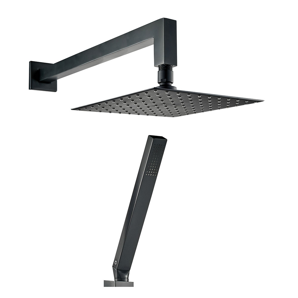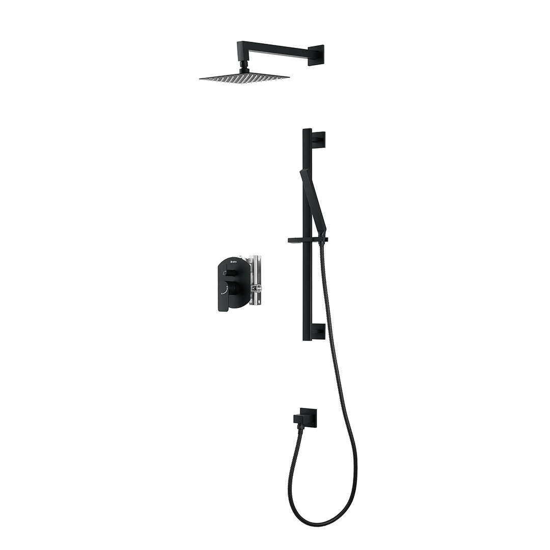akuaplus® ELENA pressure balance square Shower set in a matte black finish.