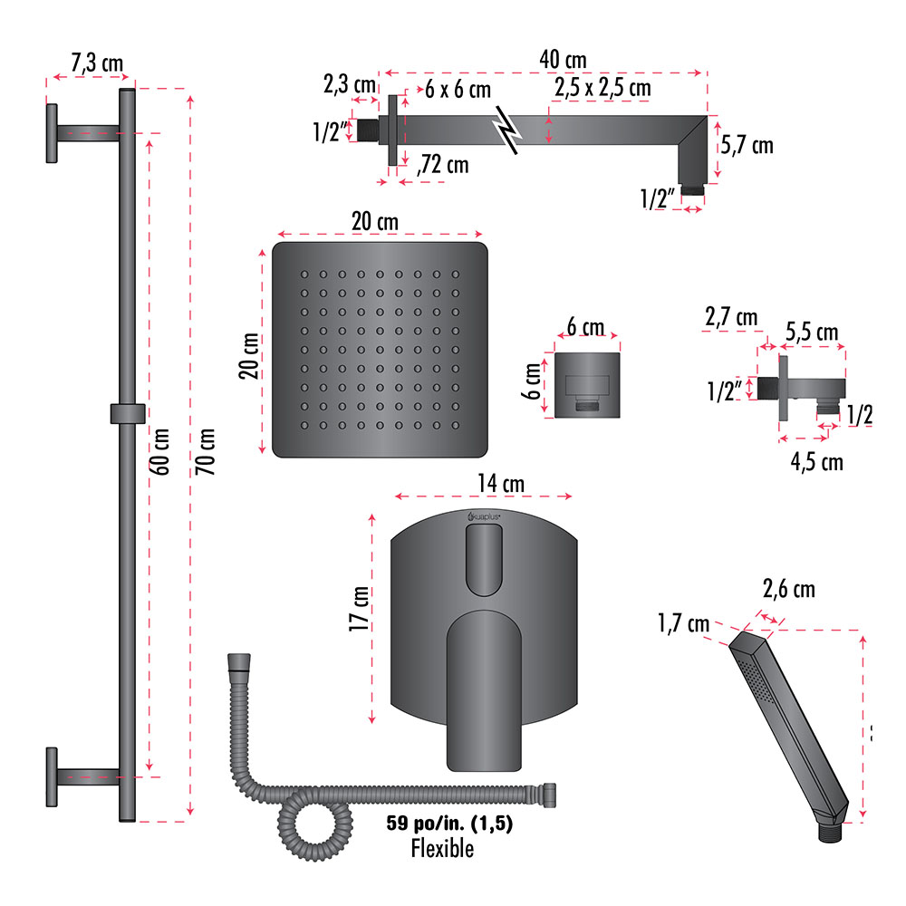 – 15 3/4 in. (40 cm) shower arm with flange