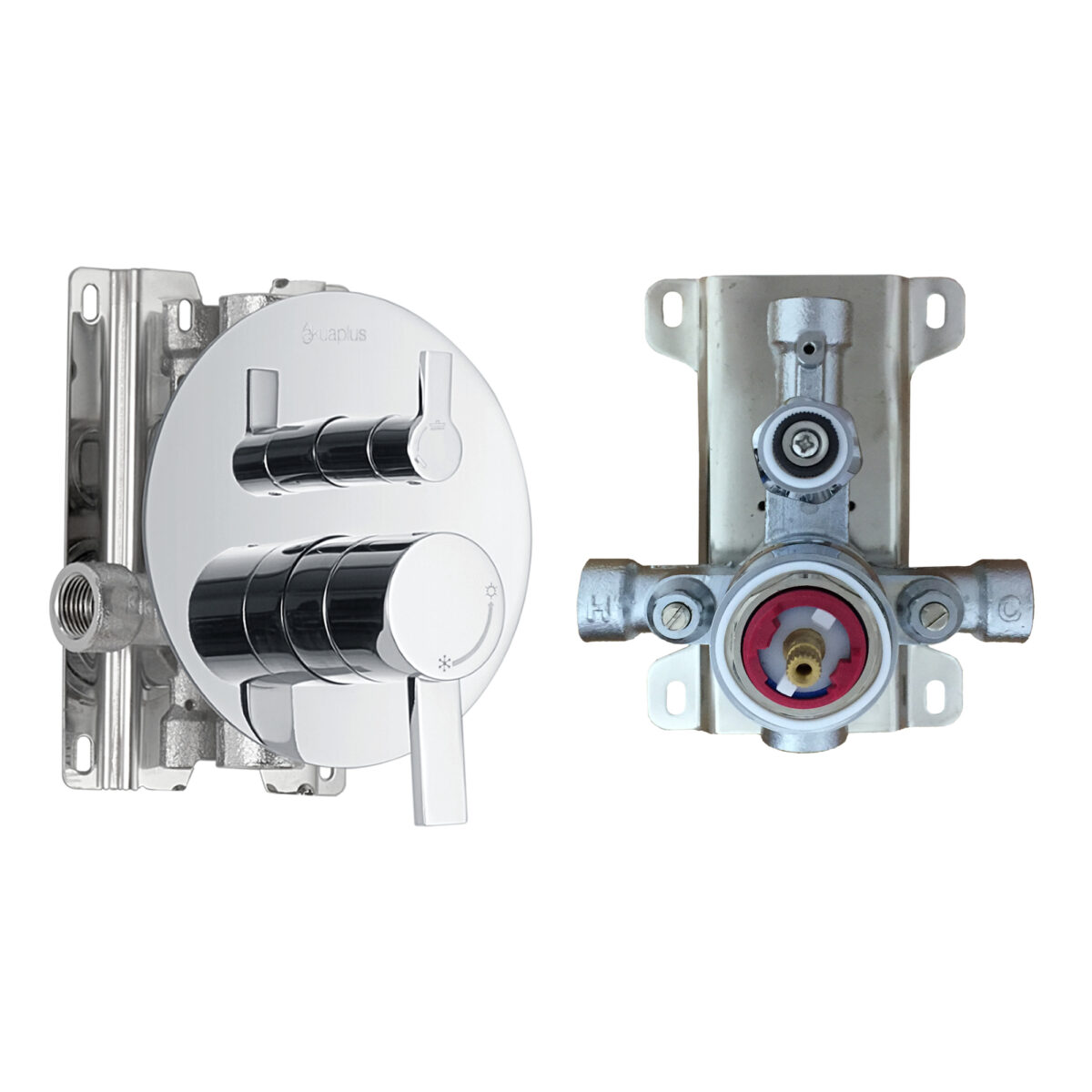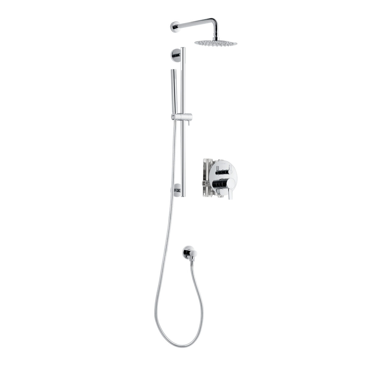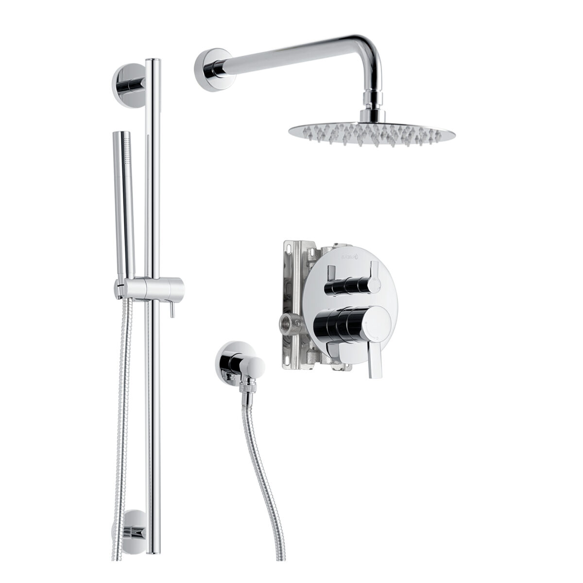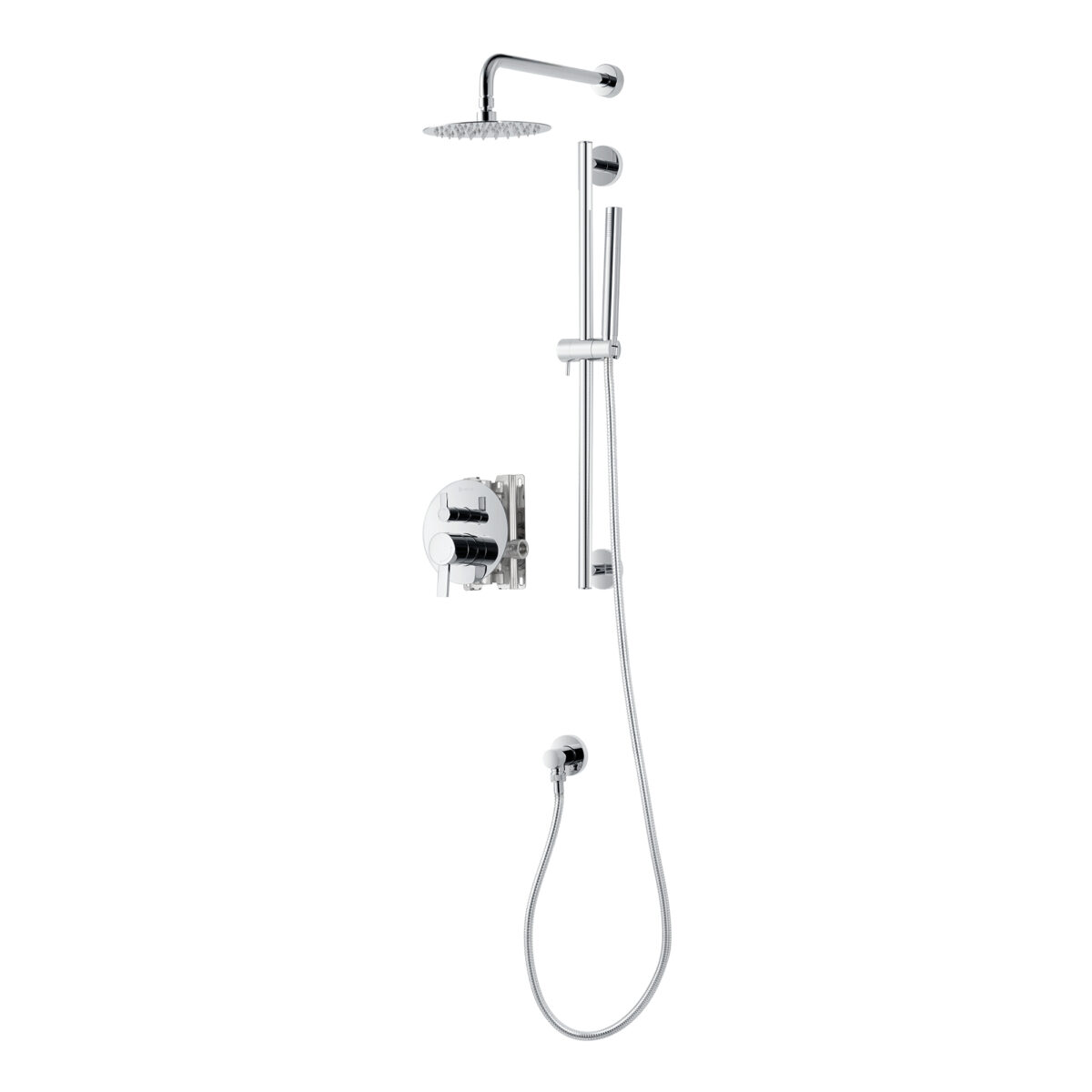 akuaplus® ELITE pressure balance round Shower set in a chrome finish.