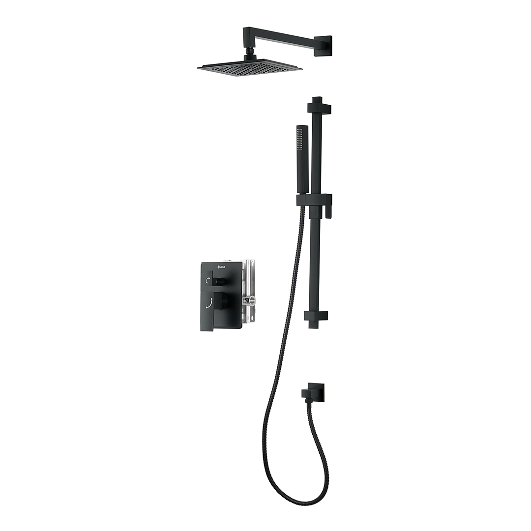 akuaplus® IRENE pressure balance square Shower set in a matte black finish.