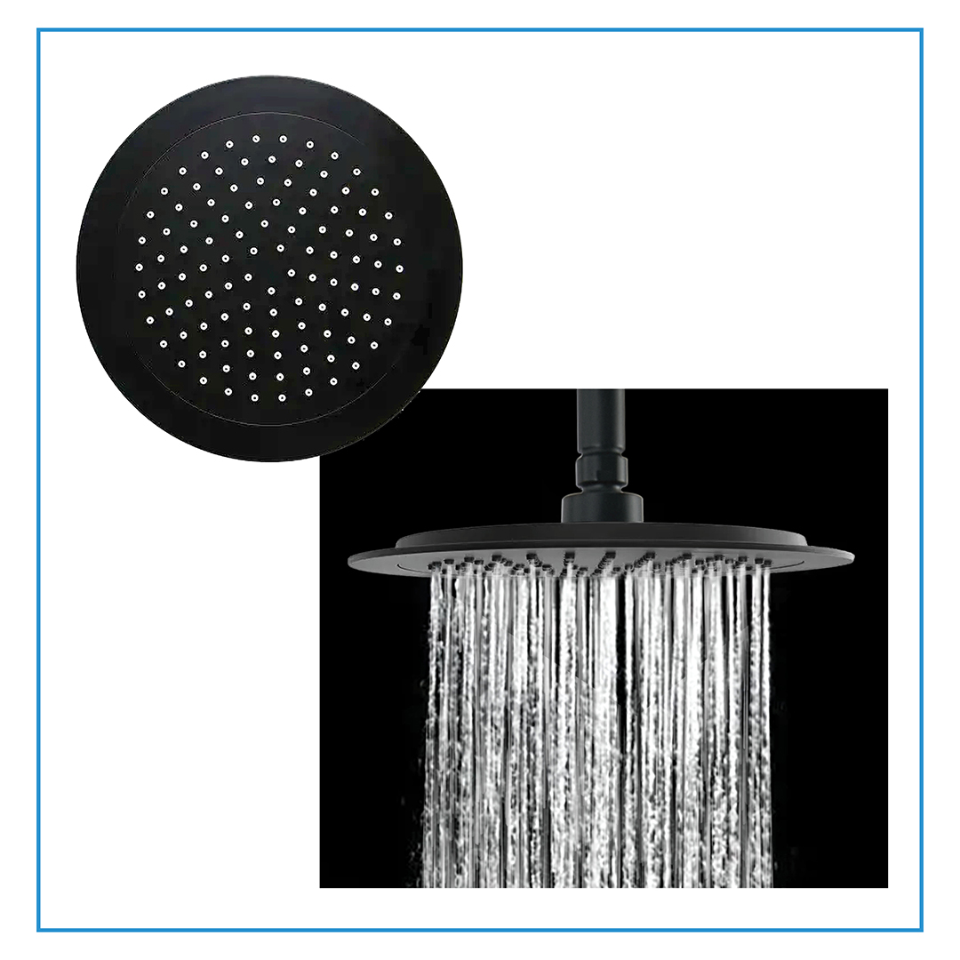 ROUND PRESSURE BALANCE BATH-SHOWER SET: Valve made of brass with pressure balance cartridge; 3-way diverter (shower head, bath spout or both simultanously); 8-inch (20.3 cm) ceiling mount brass shower arm; 9-1/2 inch (24.13 cm) ABS shower head, swivelling with brass ball joint; Easy-to-clean anti-limescale nozzles; Slip-on bath spout, 7-1/2 inches (19 cm), made of zinc; Flow rate of 9.5 L/min (2.5 US gal/min).