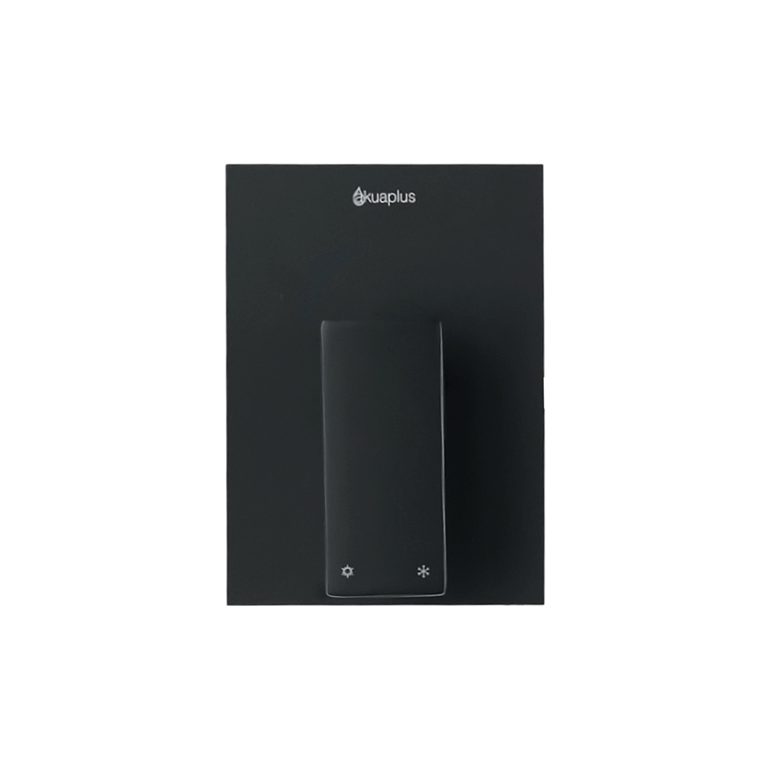 akuaplus® Pressure Balance Shower Kit with brass valve, single-setting hand Shower, adjustable 29 3/4-inch wall bar, and flexible stainless steel hose in a matte black finish.