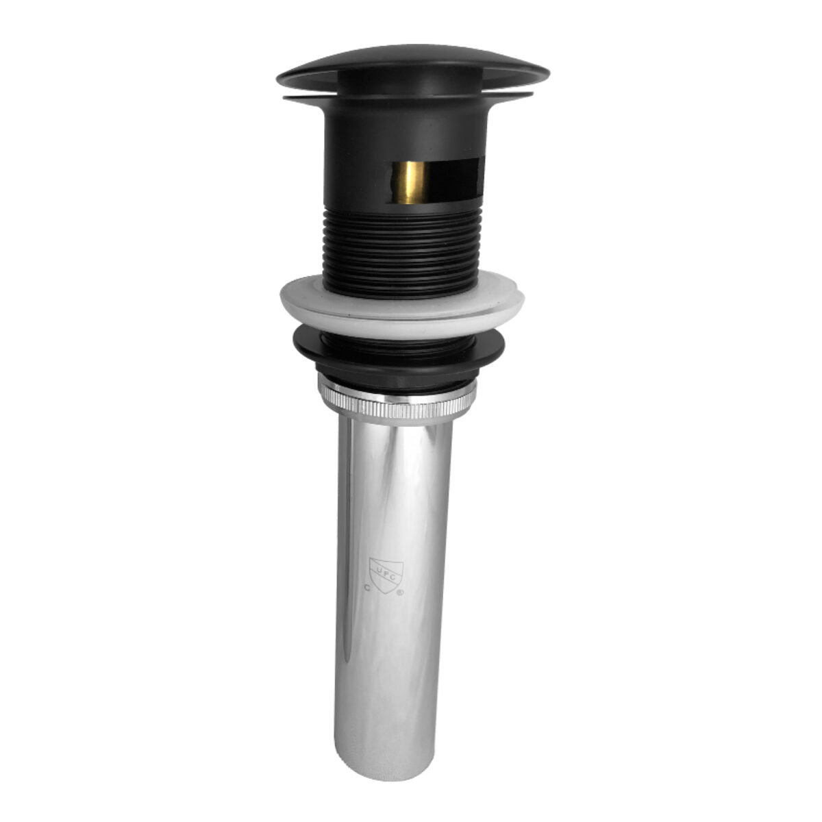 The akuaplus® push-button pop-up dwaterfall is made of brass, providing durability and corrosion resistance. Designed for bathroom sinks with overflow, it ensures efficient water dwaterfallage through a simple and reliable push-button mechanism. The press-to-open and close system allows easy operation. Compatible with most standard lavatories, this dwaterfall combines functionality with straightforward installation.