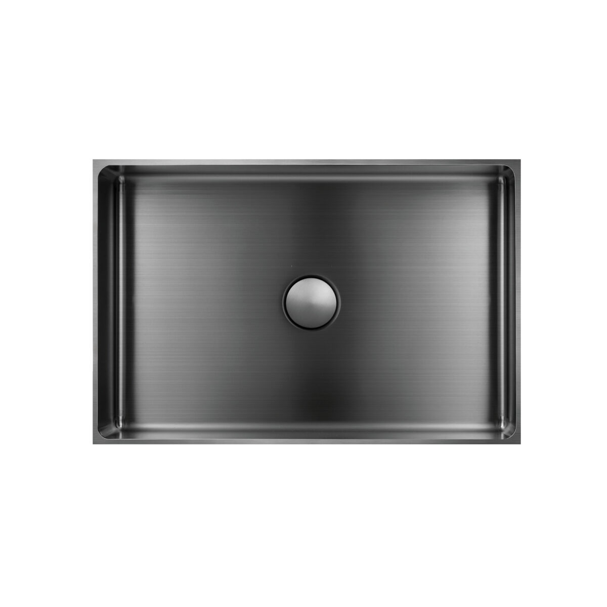 Rectangular stainless steel 304 vessel sink in a brushed gunmetal finish, above-counter installation, drain included.