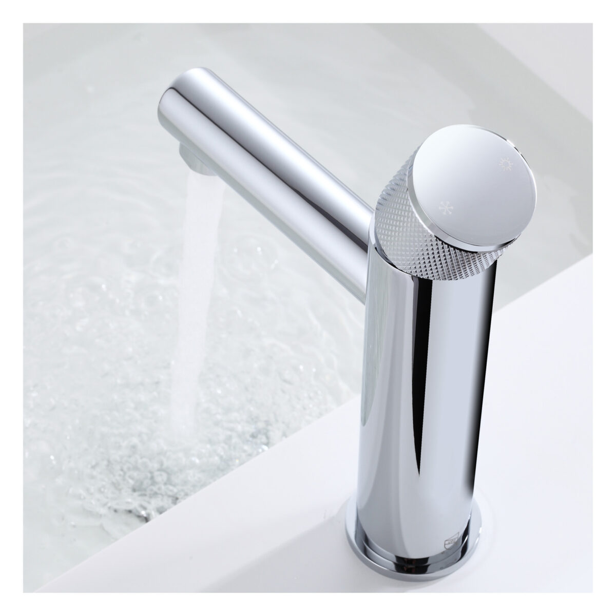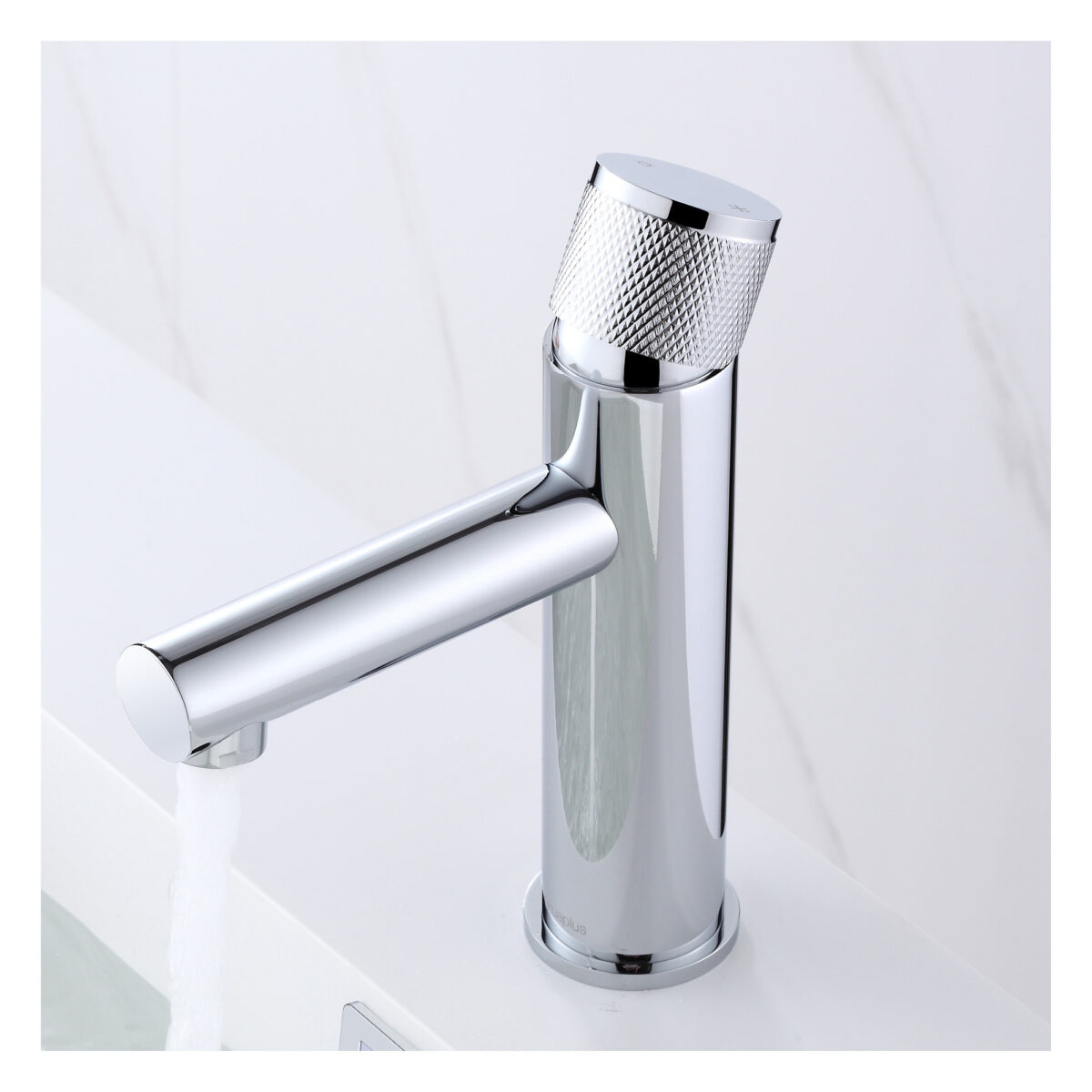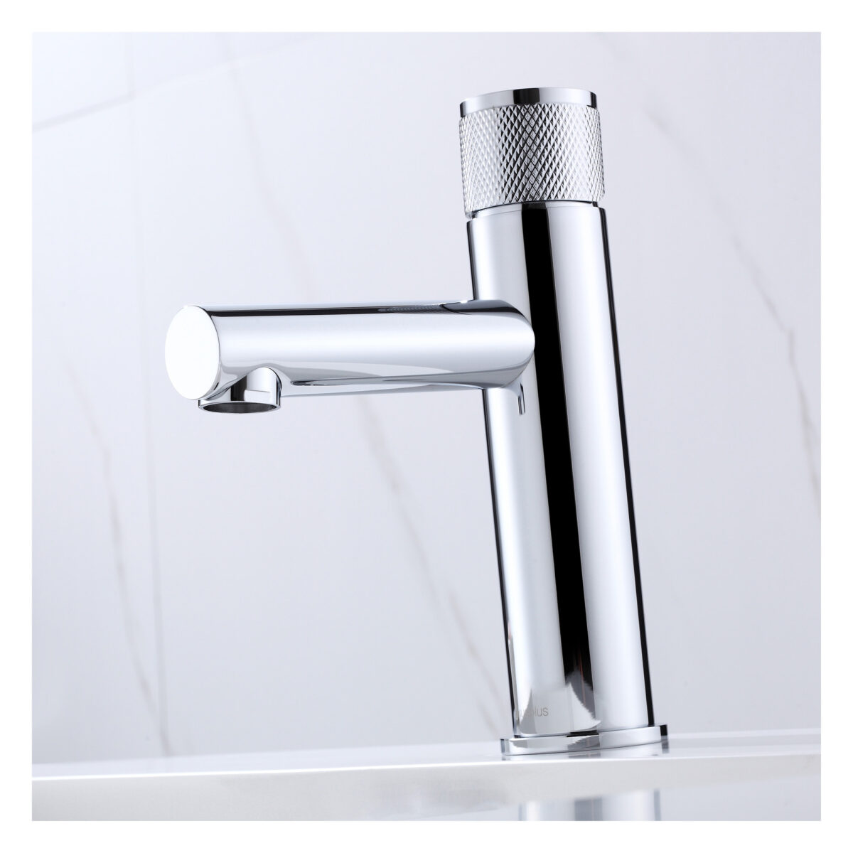 Single-hole bathroom faucet made of brass and equipped with a ceramic cartridge. Flow rate of 6.81 L/min (1.8 US gal/min) meeting water-saving standards. Water supply lines included. Drain assembly and 3-hole deck plate sold separately. cUPC and NSF certified, compliant with lead-free (Pb-free) requirements.