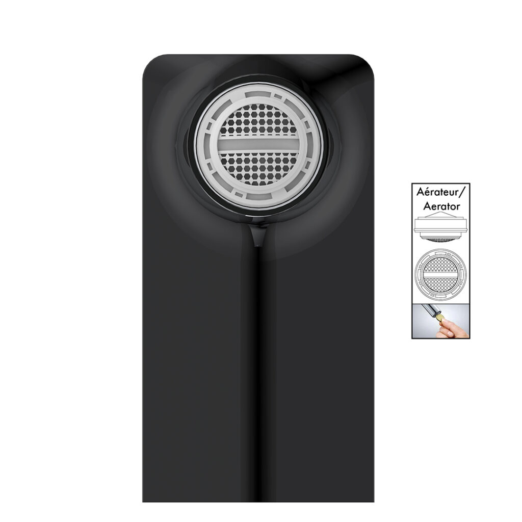 Single-hole bathroom faucet made of brass and equipped with a ceramic cartridge. Flow rate of 6.81 L/min (1.8 US gal/min) meeting water-saving standards. Water supply lines included. Drain assembly and 3-hole deck plate sold separately. cUPC and NSF certified, compliant with lead-free (Pb-free) requirements.
