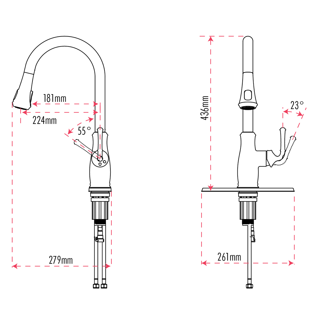 SINGLE-HOLE KITCHEN FAUCET: 2-way pulldown sprayer with smooth retraction and digital temperature display; 360° adjustable swivel spout; Easy-to-clean anti-limescale nozzles; Ceramic cartridge; Single lever for water volume and temperature control; Nylon braided hose; Flow of 6.81 L/min (1.8 US gal/min); Easy installation; Cover plate included.