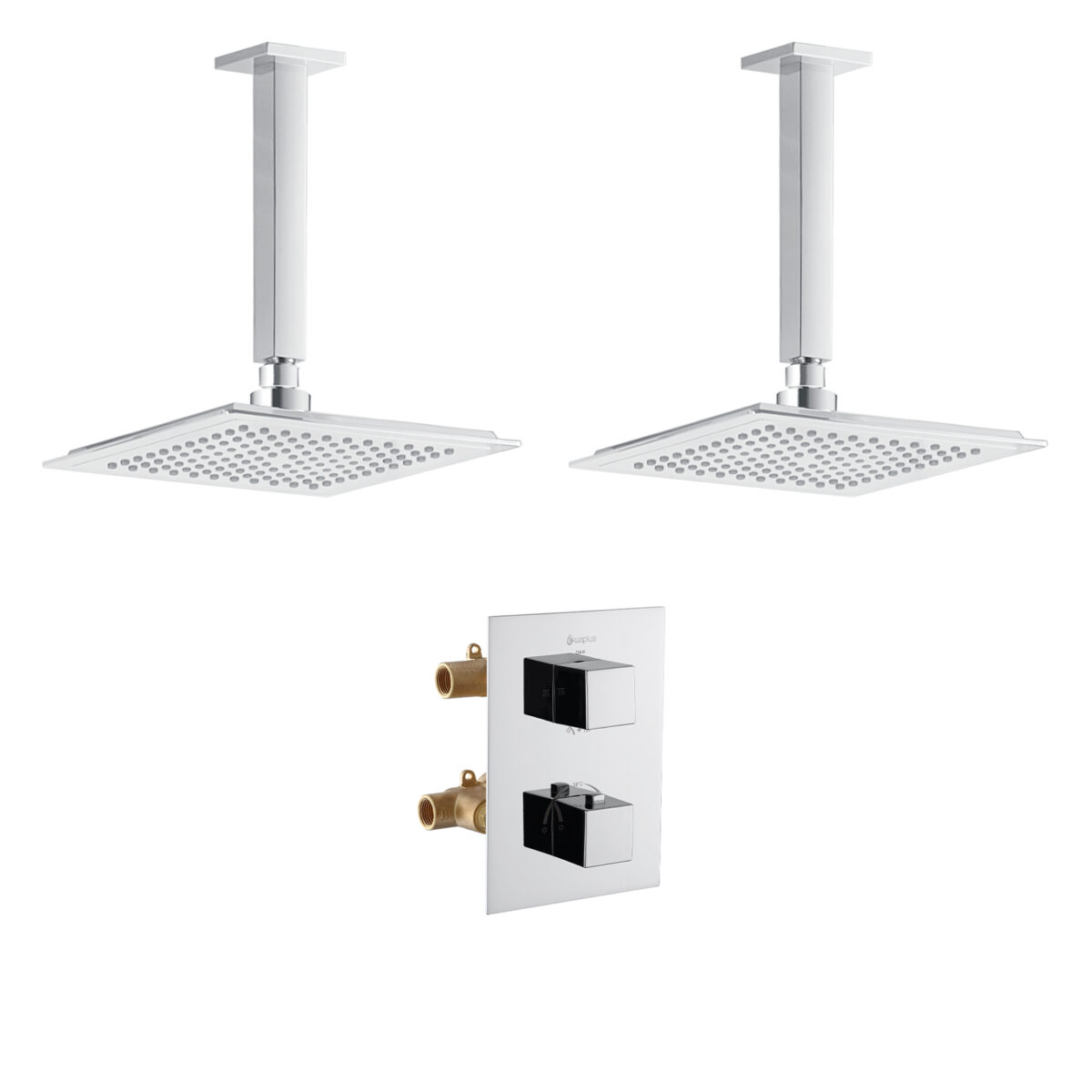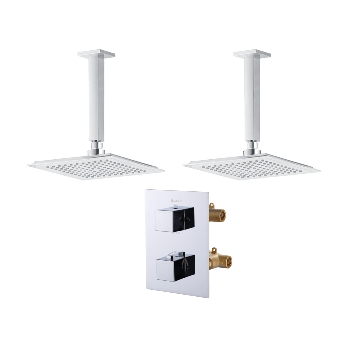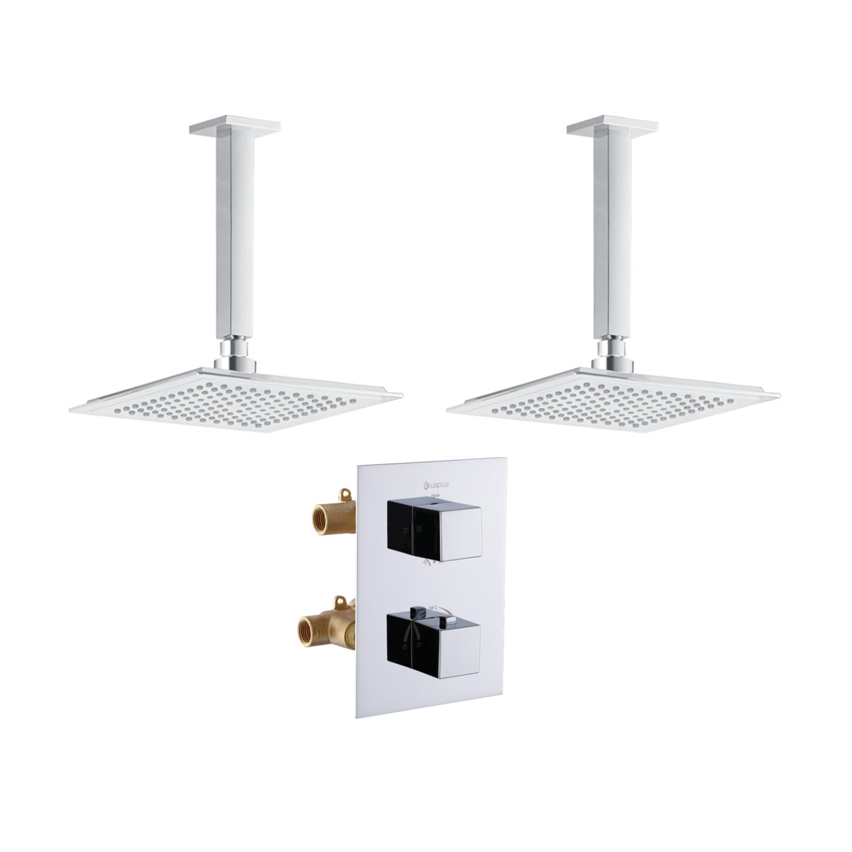 Square 4-way thermostatic duo shower set with 2 waterfall shower heads by akuaplus®