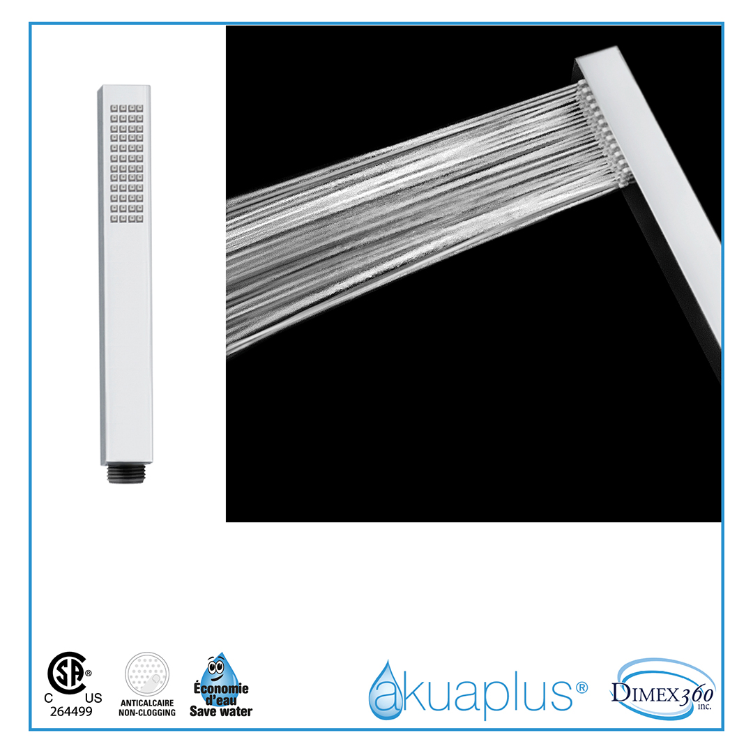 SQUARE Hand shower: Made of ABS; 1-setting; Easy-to-clean anti-limescale nozzles; Flow rate of 9.5 L/min (2.5 US gal/min).