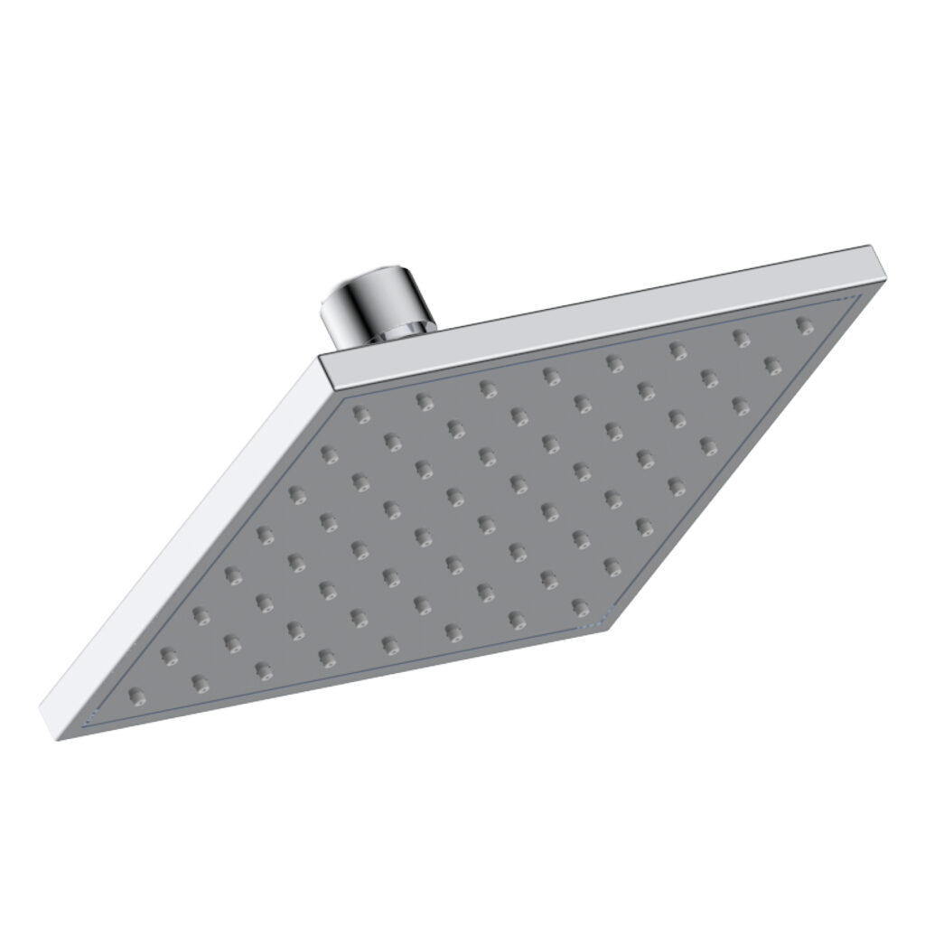 SQUARE SHOWER HEAD: Made of ABS; Easy-to-clean anti-limescale nozzles; 6 inches (15.24 cm); Flow rate of 9.5 L/min (2.5 US gal/min).